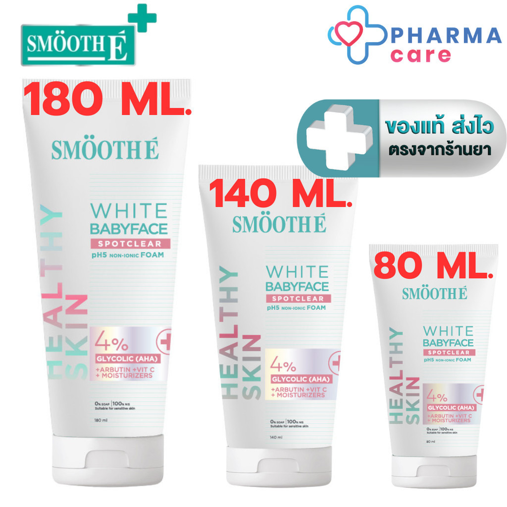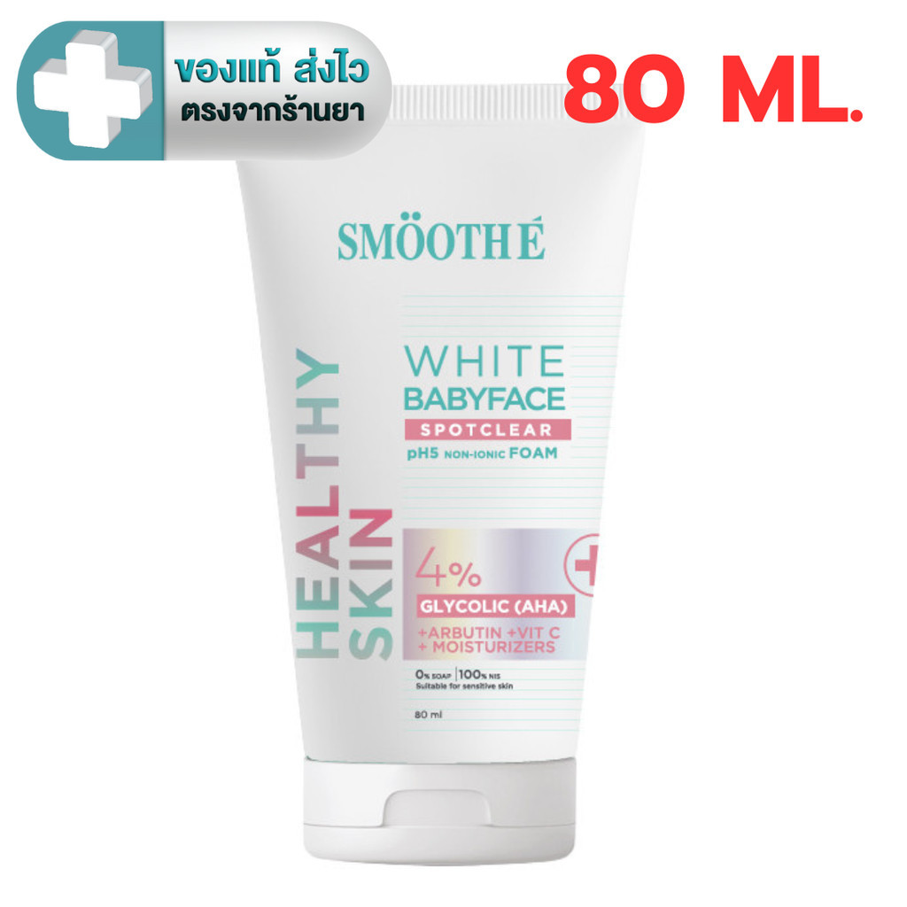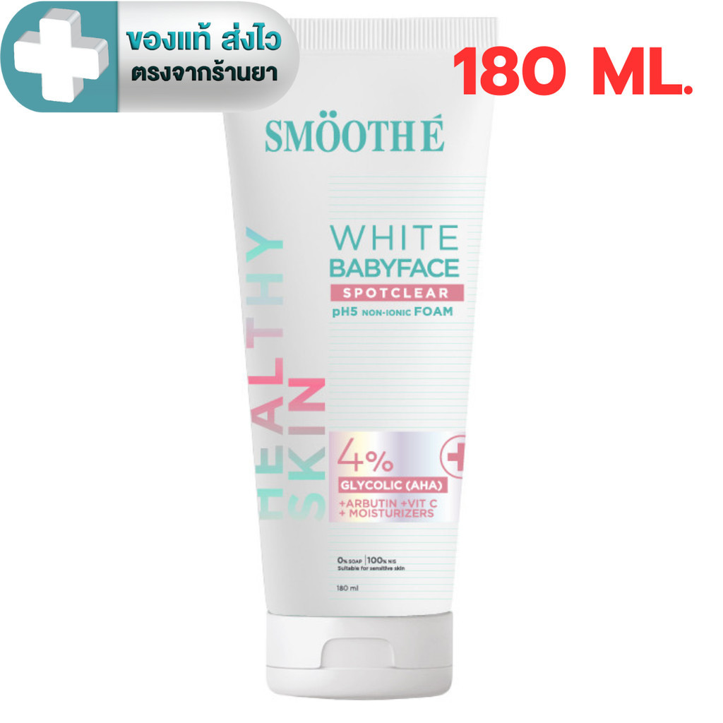 [ใหม่!] Smooth E White Babyface Spotclear ไวท์โฟมไม่มีฟอง 4% Glycolic (AHA) 80, 140, 180 ml. [PC]