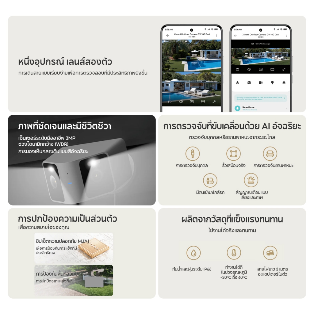 [NEW] Xiaomi Outdoor Camera CW100 DUAL ตรวจจับด้วย AI จากสองมุมมอง กล้องคู่มุมกว้างพิเศษ 2K การมองเห็นกลางคืนแบบเต็มสี