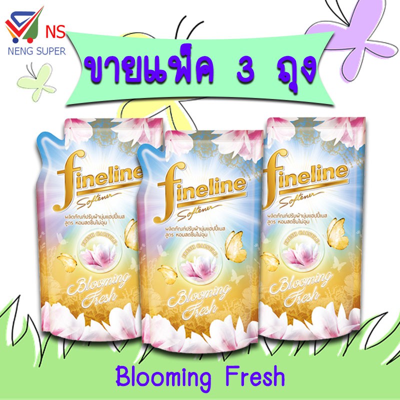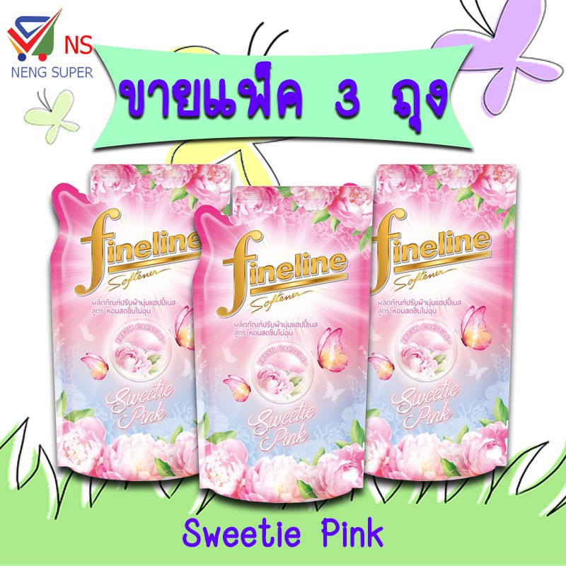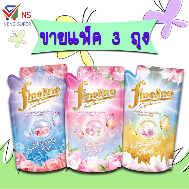 NS (แพ็ค3ถุง) ไฟน์ไลน์ ปรับผ้านุ่มแฮปปี้เนส สูตรหอมสดชื่นไม่ฉุน 450 มล.