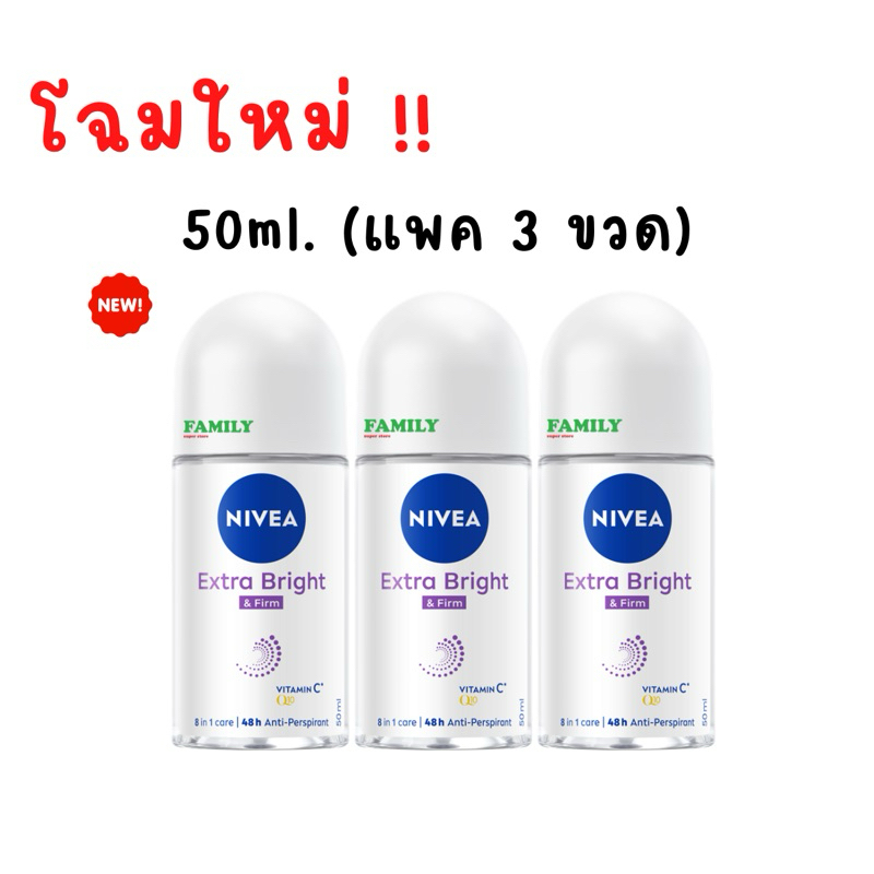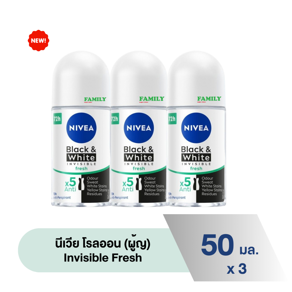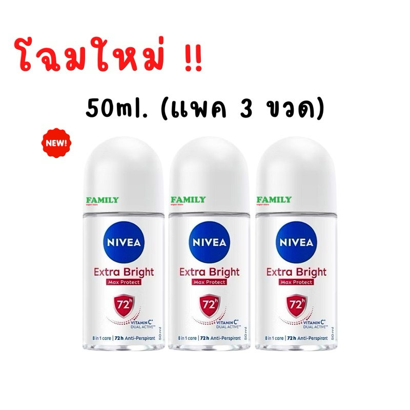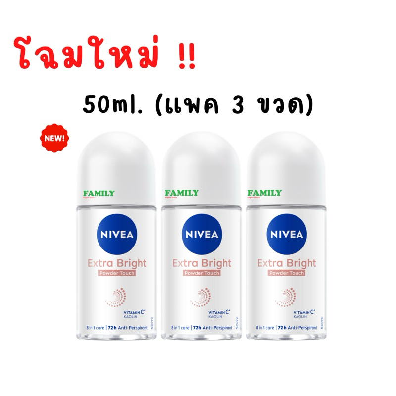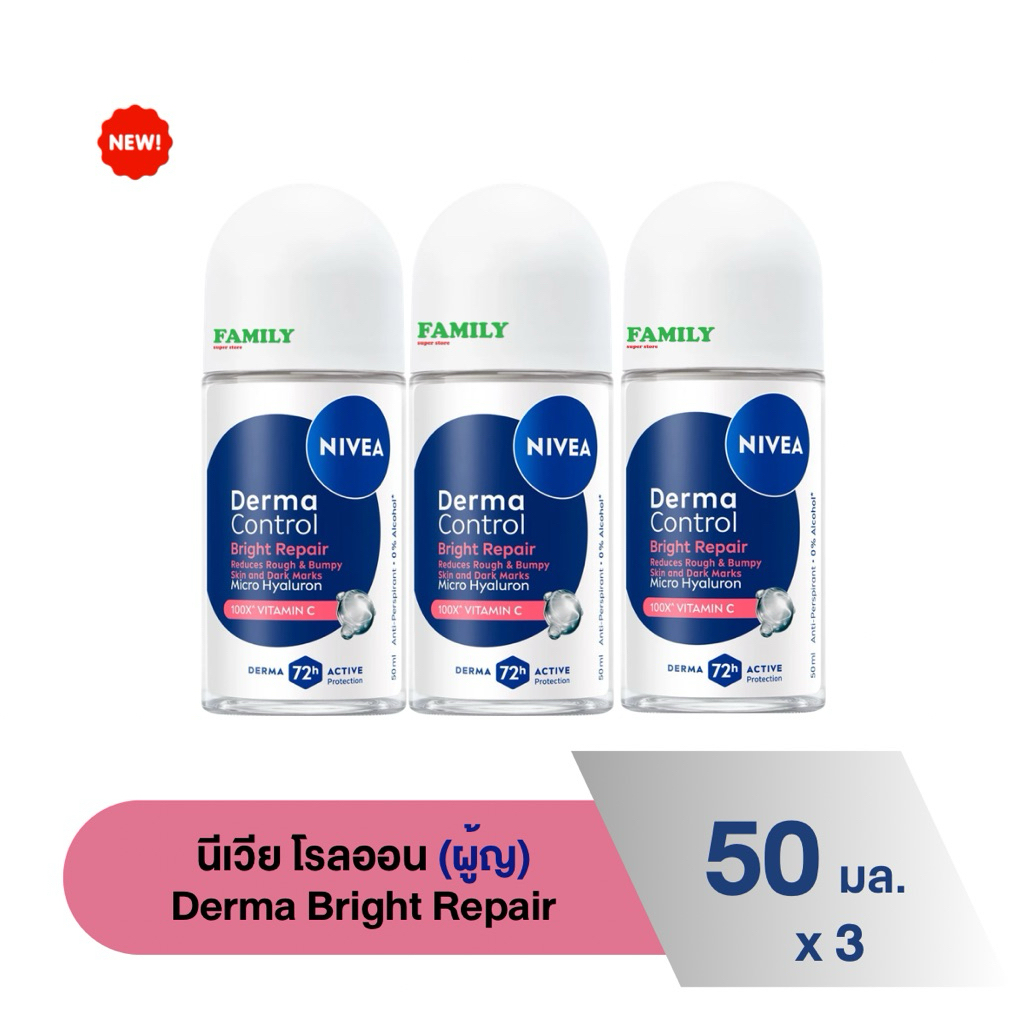 (แพค 3) NIVEA นีเวีย โรลออนระงับกลิ่นกาย(ผู้หญิง) รวมทุกสูตร 50ml