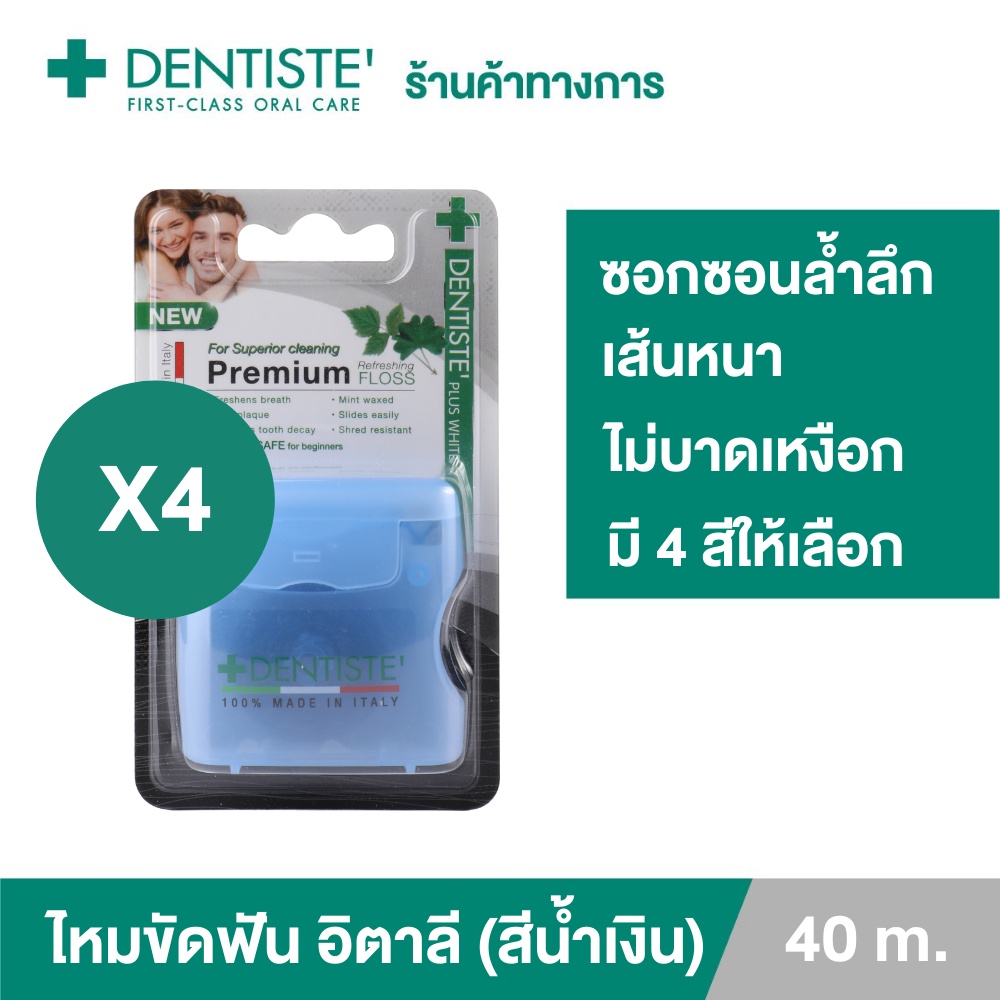 Dentiste' Dental Floss Italy 40 m.(ฺBlue) เดนทิสเต้ ไหมขัดฟัน ทำความสะอาดคราบพลัค จับง่ายถนัดมือ (แพ็ค 4ชิ้น)