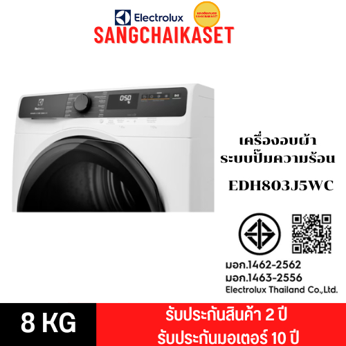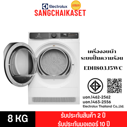 Electrolux เครื่องอบผ้าระบบปั๊มความร้อน UltimateCare 500 ความจุ 8 กก. รุ่น EDH803J5WC (พร้อมขาตั้ง)