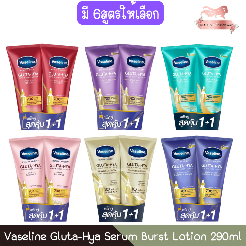(แพ็คคู่ 1+1) Vaseline Gluta-Hya Serum Burst Lotion 290ml วาสลีน กลูต้า-ไฮยา เซรั่ม เบิสท์ โลชั่น 290มลล