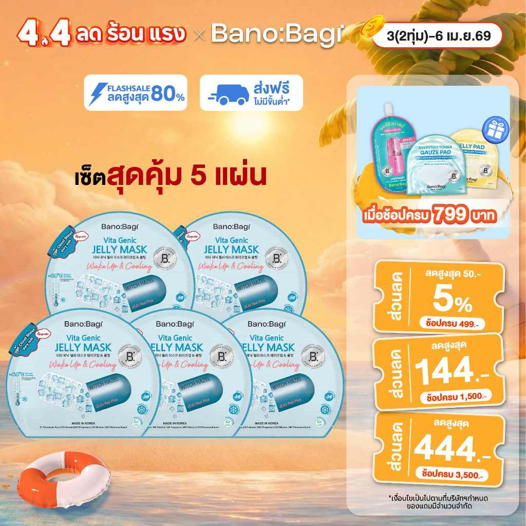 (WakeUp & Cooling เซต 5 แผ่น) บาโนบากิ BANOBAGI Vita Genic Jelly Mask Wake up & Cooling 26 ml