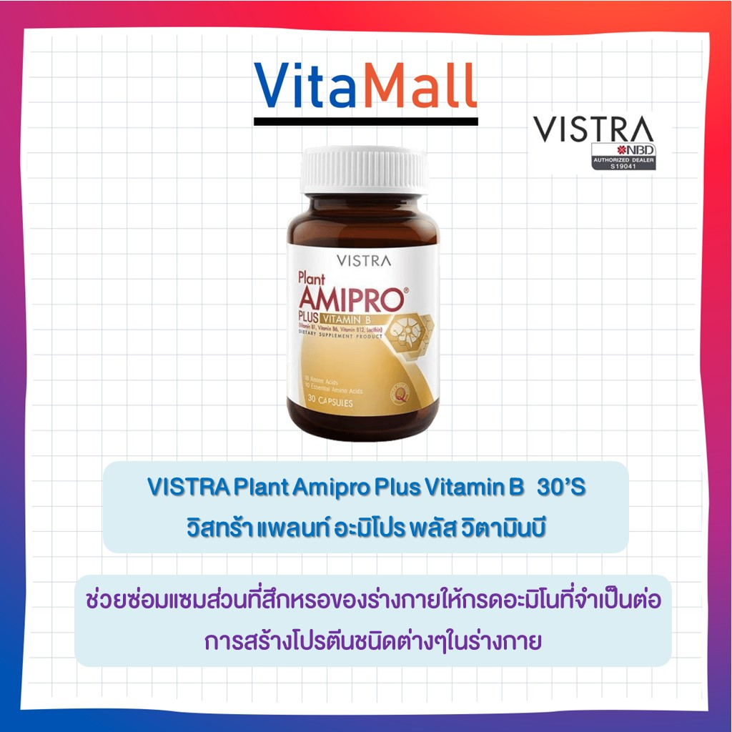 VISTRA Plant AMIPROโปรตีนเสริม Plus Vitamin B วิตามินบีสำหรับคนที่อ่อนเพลียทำงานหนักทำให้สมองสดชื่น