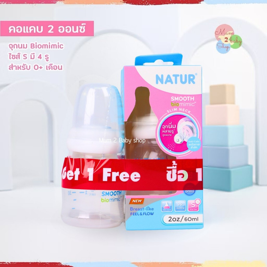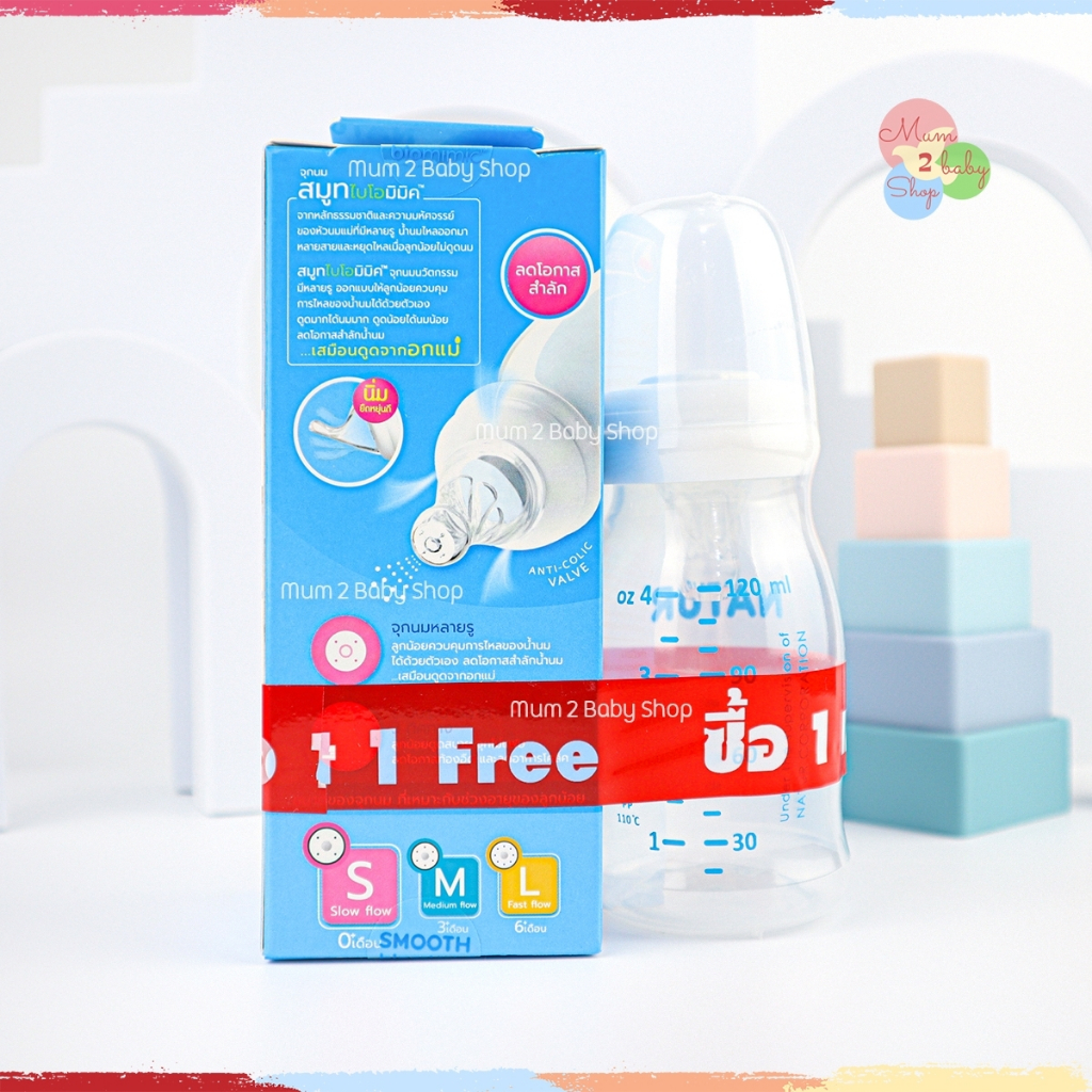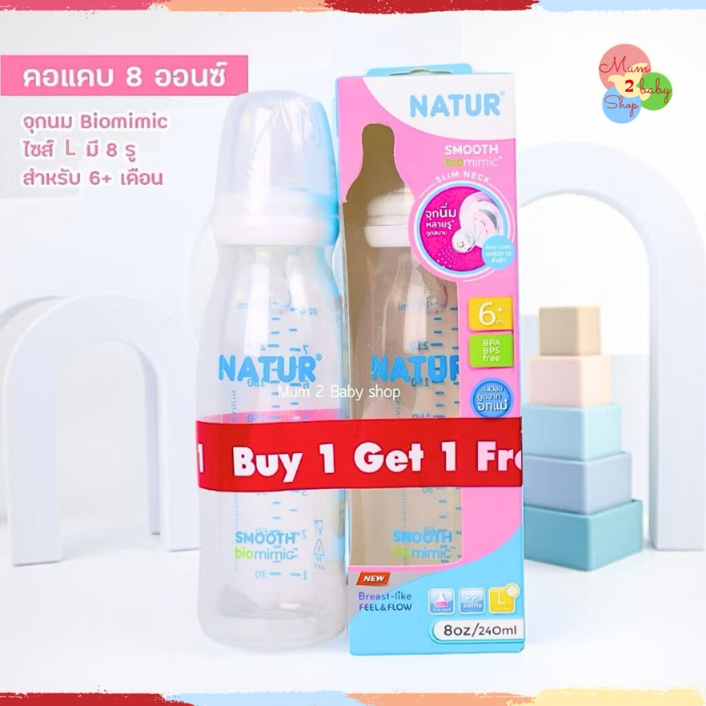 Ne020 เนเจอร์ ขวด1แถม1 NATUR ขวดนม Uhappy 2,4,8ออนซ์พร้อมจุกนมไบโอมิมิคไซส์S-L
