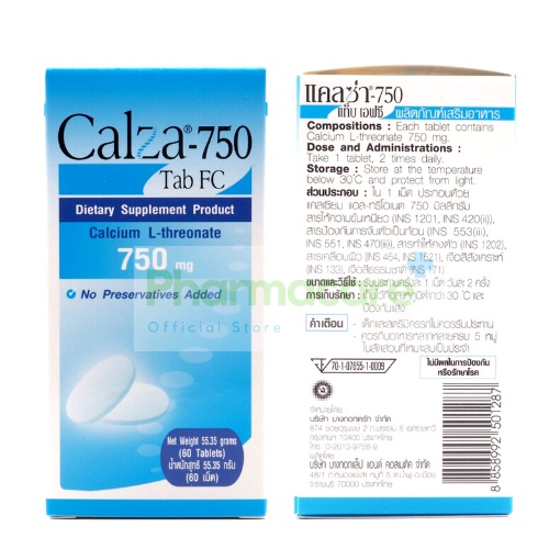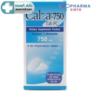 lot ใหม่ หมดอายุ 06/2027 CalZa แคลซ่า แคลเซียม แอล- ทรีโอเนต 750 mg.ชนิดเม็ด 60 เม็ด [Pcare]