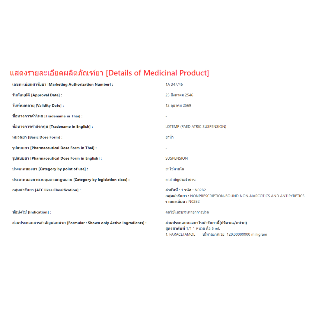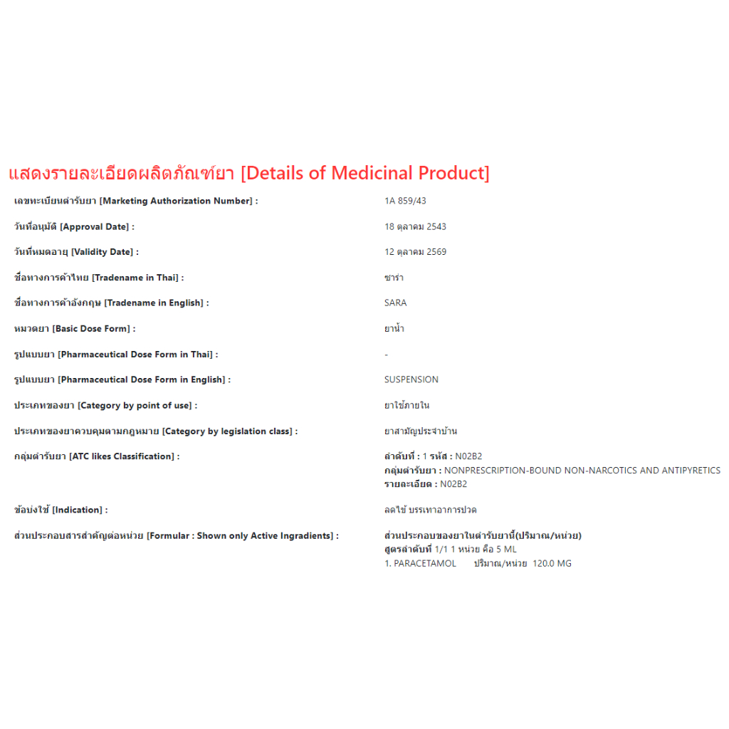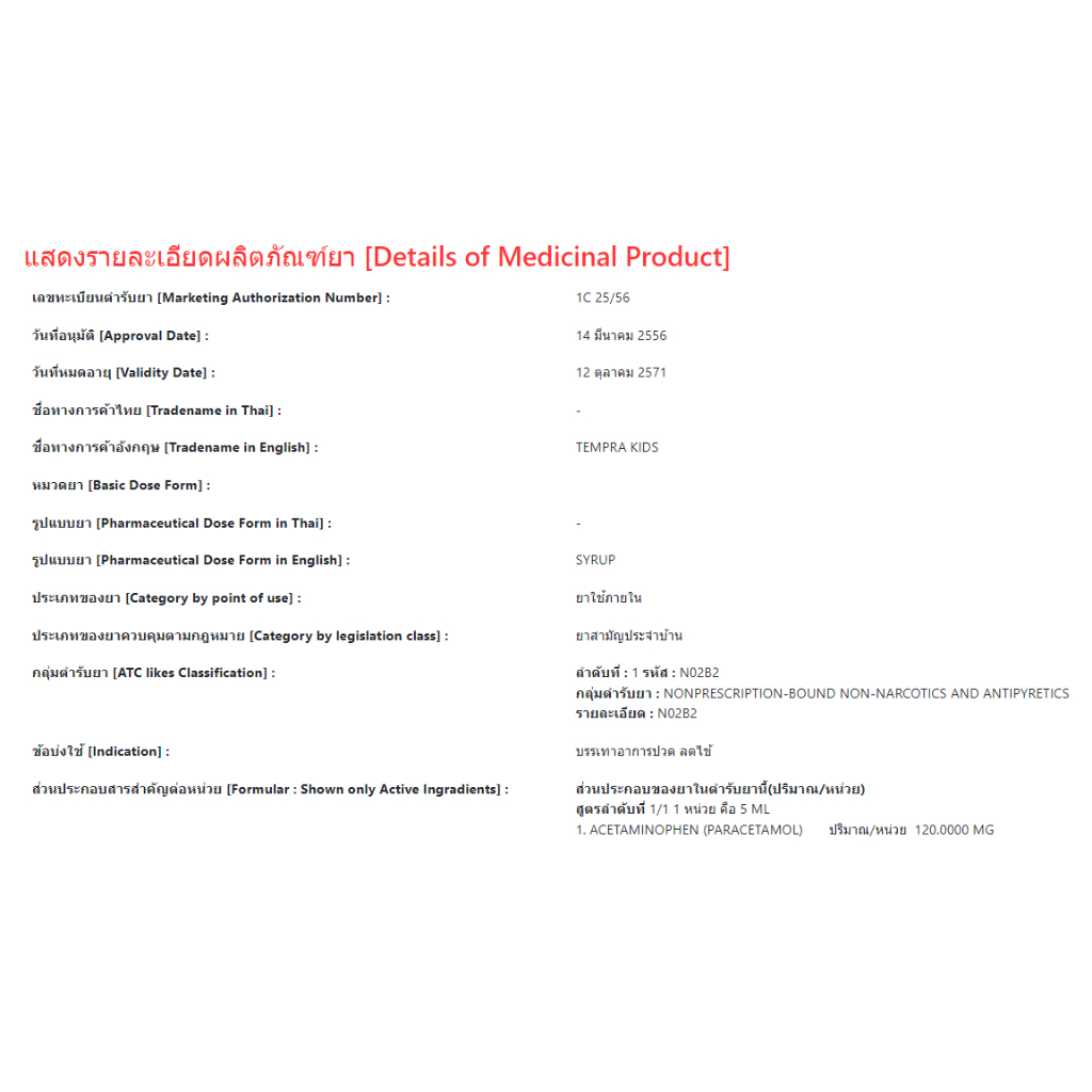 ยาลดไข้เด็ก ยาลดไข้เด็กเล็ก Tempra Kids / Lotemp / Sara