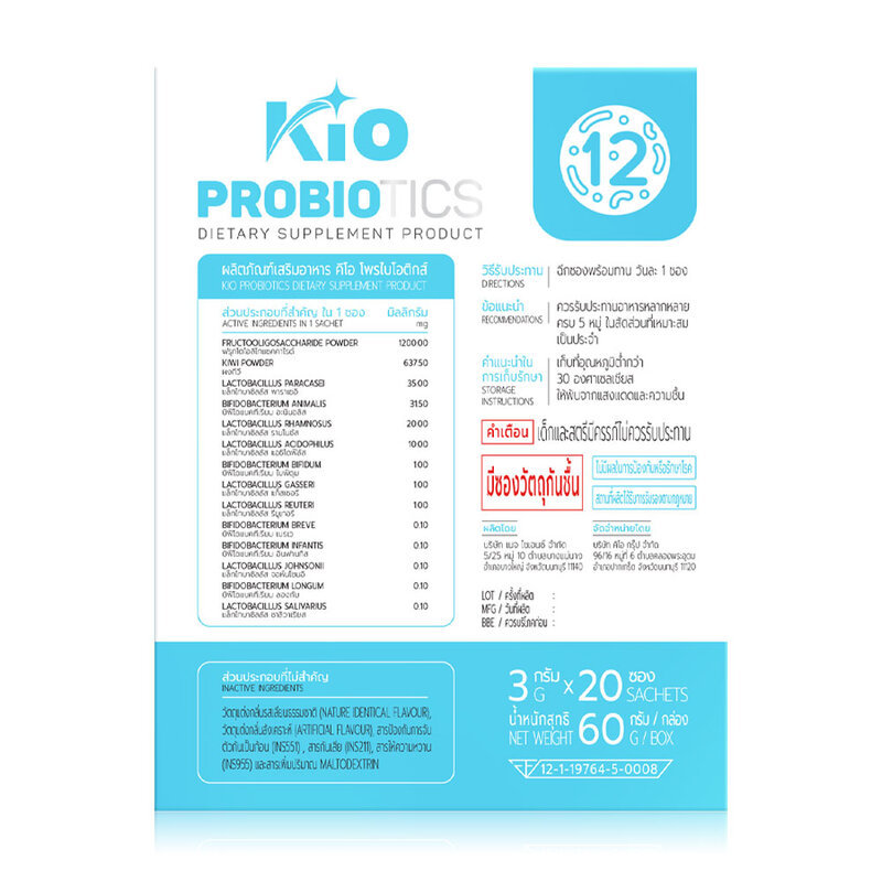 KIO Probiotic Dietary Supplement Product 20 Sachets ผลิตภัณฑ์อาหารเสริม คิโอ เอส โพรไบโอติก.