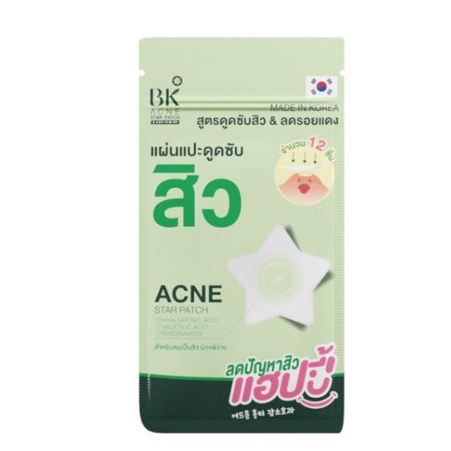 แผ่นแปะสิว BK ACNE STAR PATCH บีเค เอซีน สตาร์ แพทช์ (12ชิ้น/ซอง)