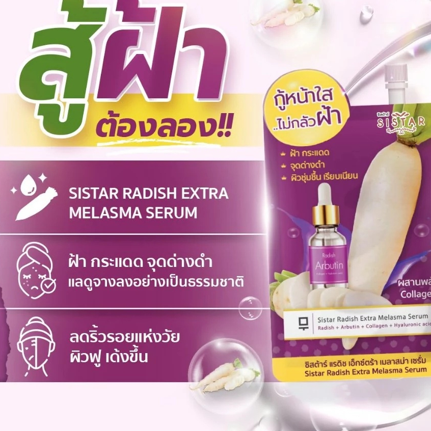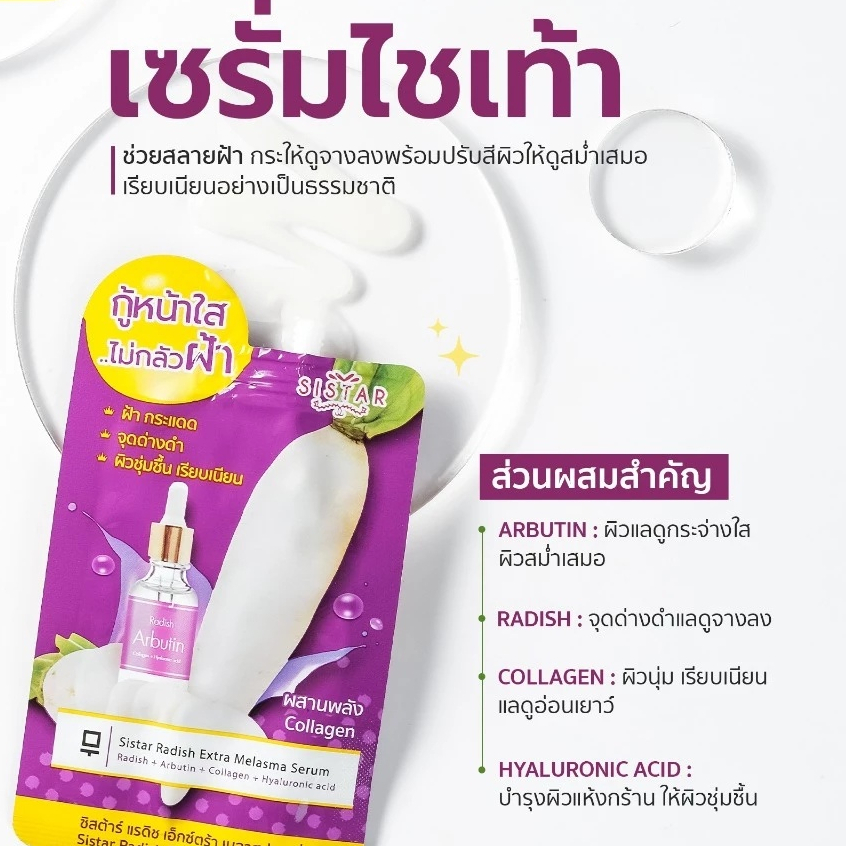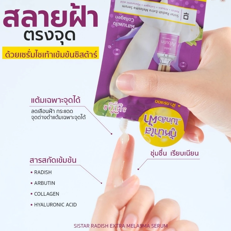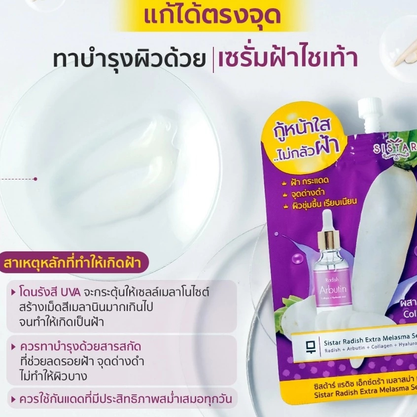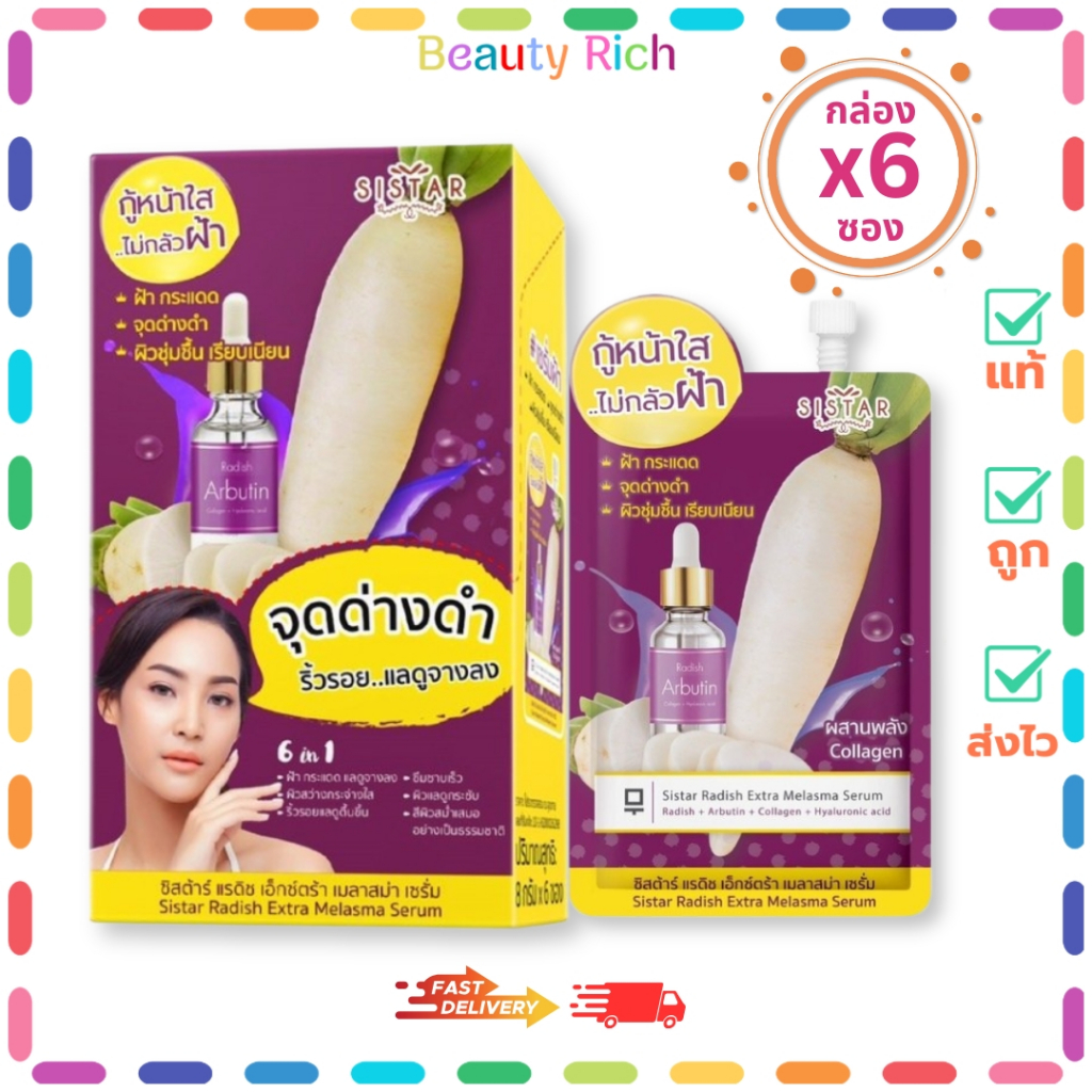 (กล่อง 6 ซอง) Sistar ซิสต้าร์ เซรั่มฝ้ากระ เซรั่มไชเท้า แรดิช เอ็กซ์ตร้า เมลาสม่า (ปริมาณ 8 กรัม)