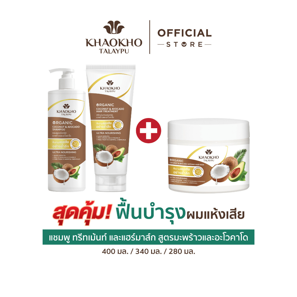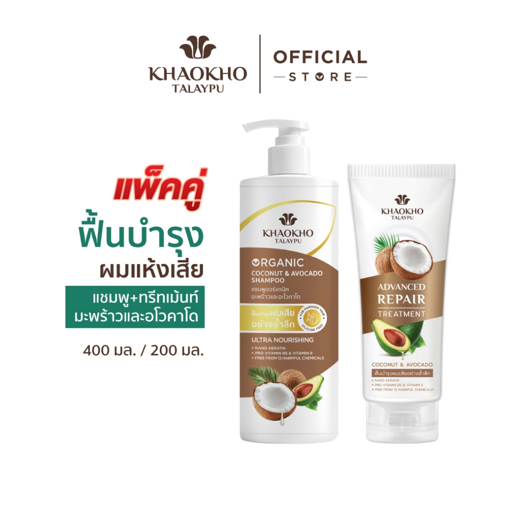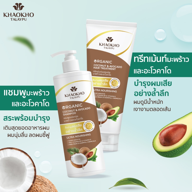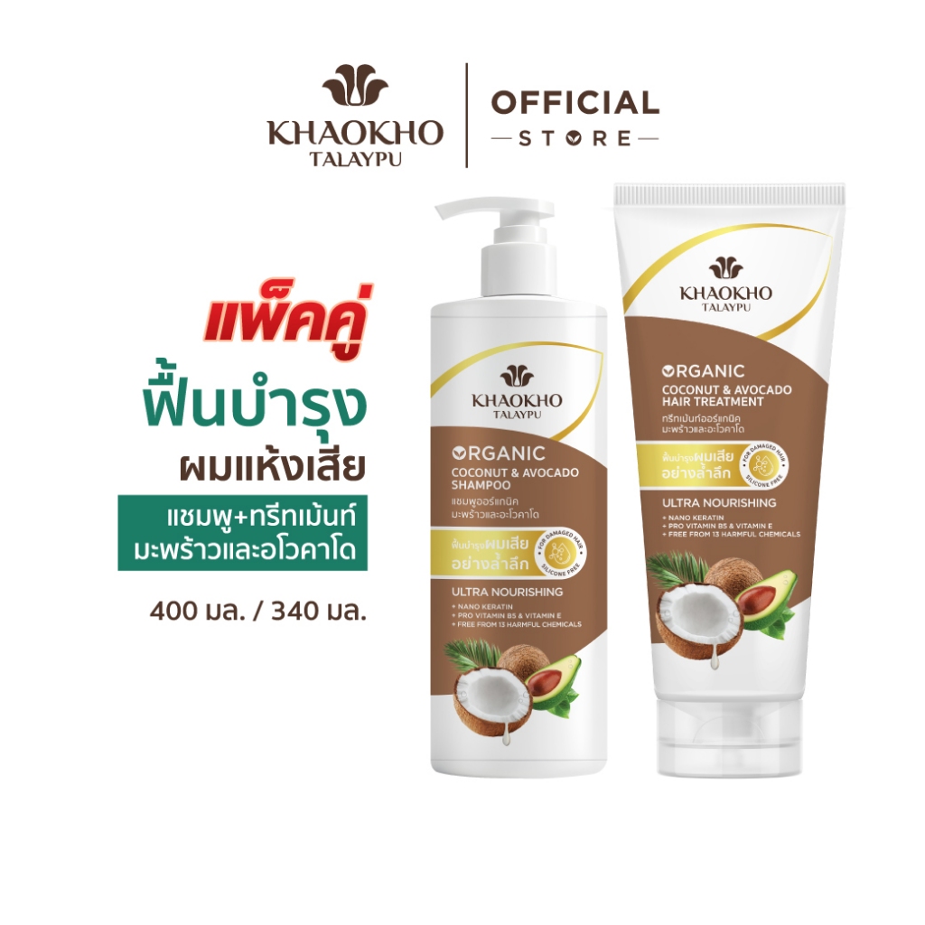 [เซตสุดคุ้ม] Khaokho Talaypu เขาค้อทะเลภู แชมพูและครีมนวด สูตรมะพร้าวและอะโวคาโด ช่วยลดผมแห้งเสีย (400 มล. /340 มล.)