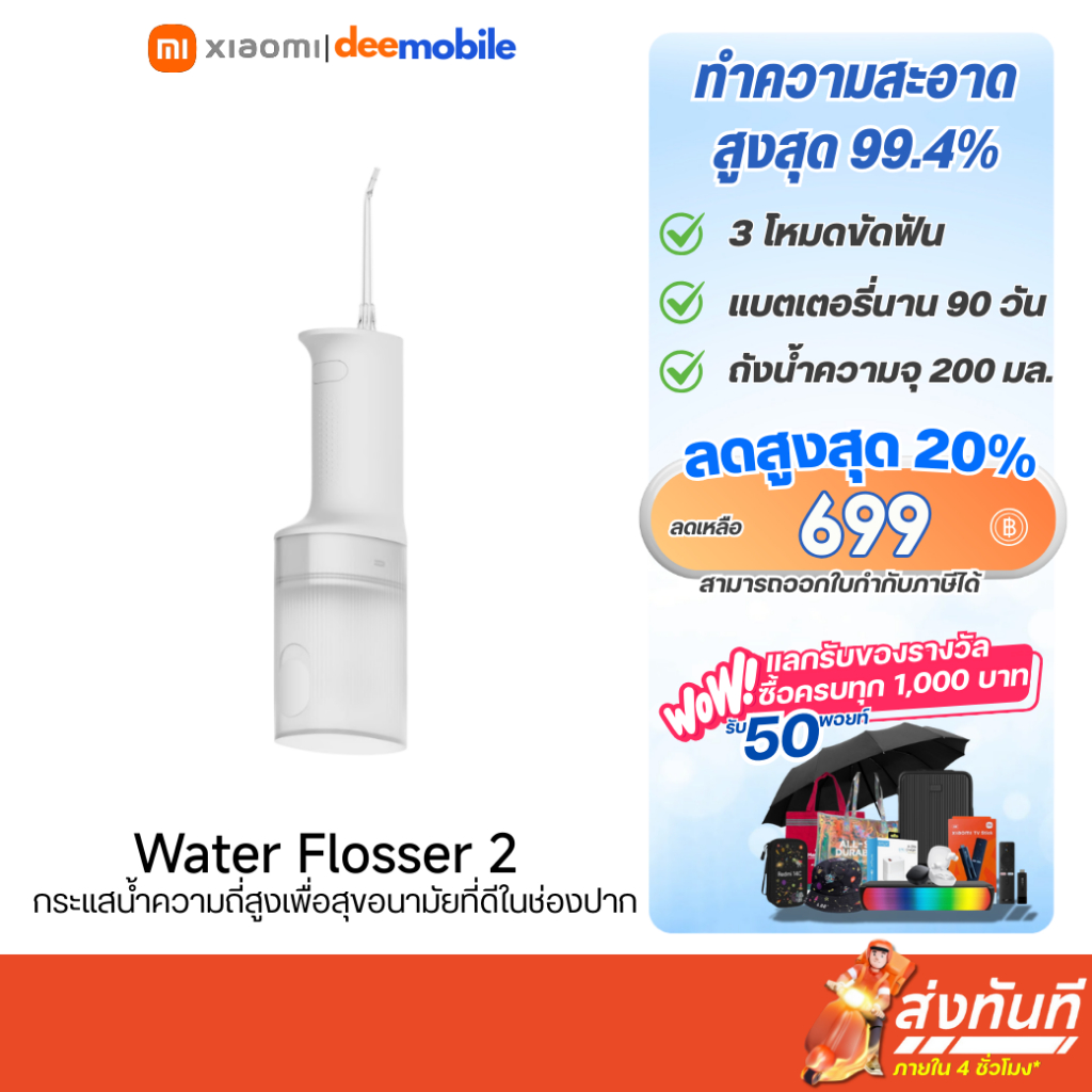 Xiaomi Water Flosser 2 ไหมขัดฟันพลังน้ำ แบบ พกพา Irrigator ไหมขัดฟัน ระดับการกันน้ำ IPX7 ถังน้ำความจุสูง