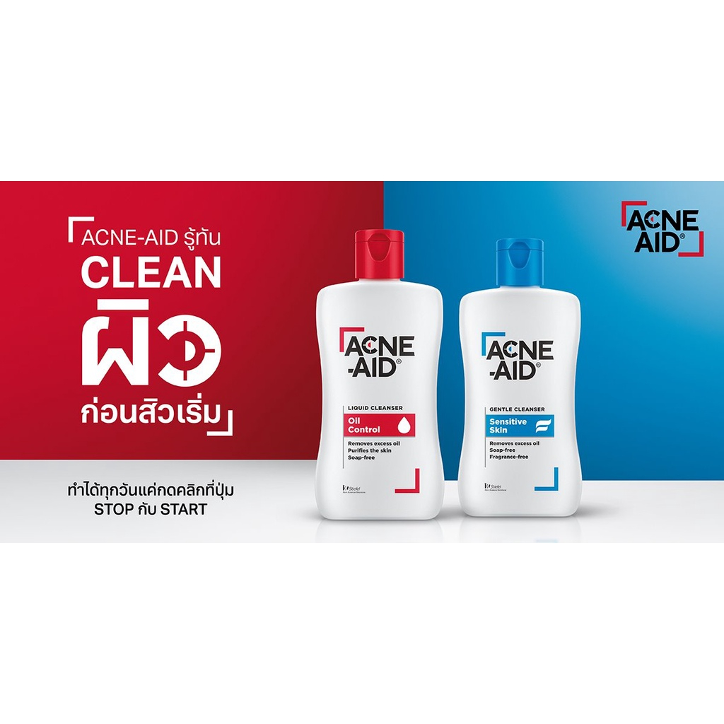 ACNE AID Liquid Cleanser Oil Control(แดง) / ACNE AID Gentle Cleanser Sensitive Skin(ฟ้า) [50ml./100ml.)