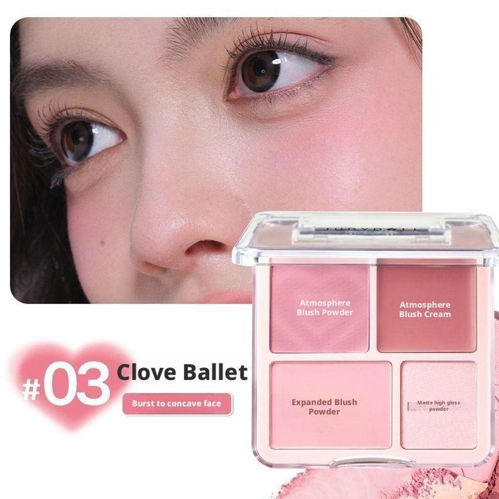 บลัชออนพาเลท 4 In 1 Long Lasting Highlighter Blush เกาหลี Eye แต่งหน้า Face Contour Blush แต่งหน้า Y7J7