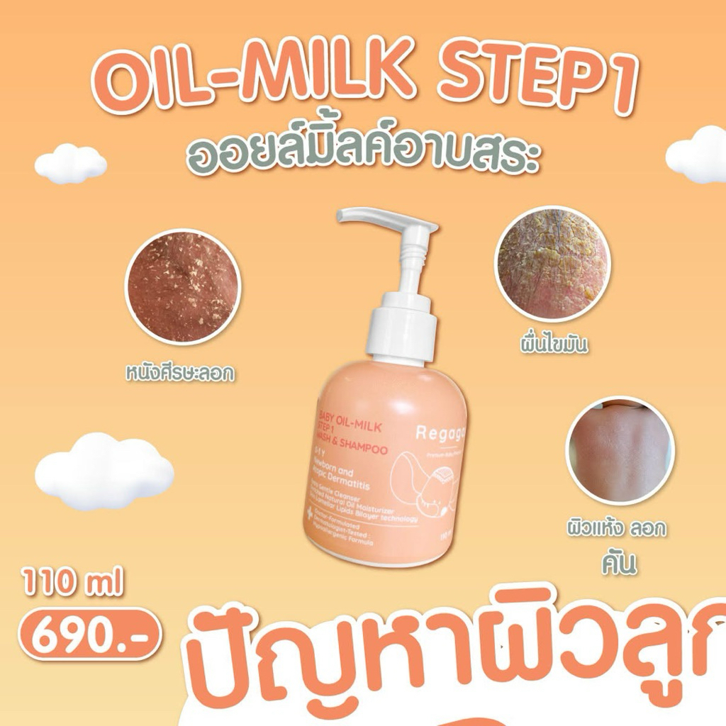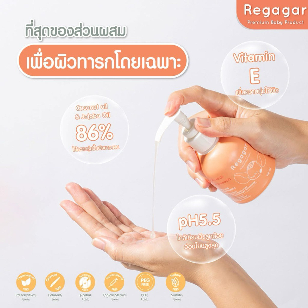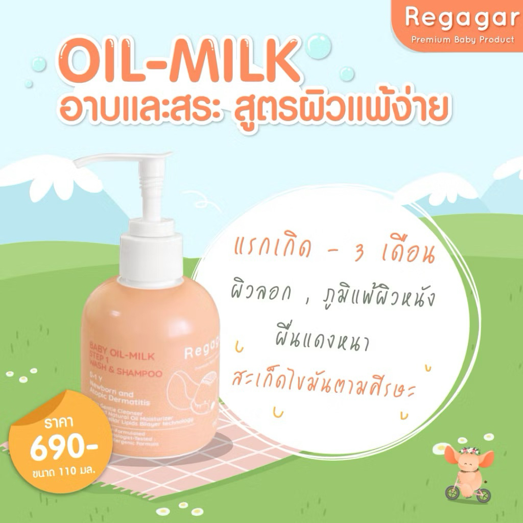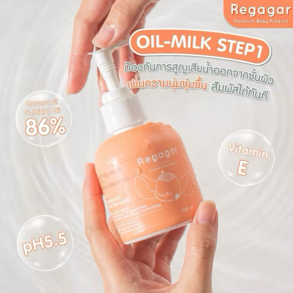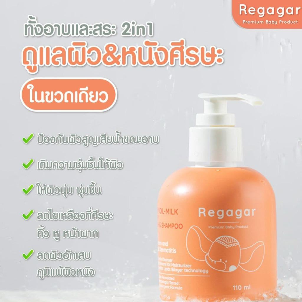 Regagar Baby Oil-milk wash and shampoo ( 110มล.) เรกาการ์เจลอาบน้ำ สูตรแพทย์ ลดผดผื่น ใช้ได้ตั้งแต่แรกเกิด
