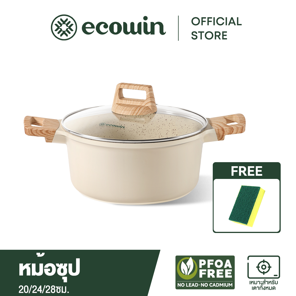 Ecowin หม้อซุปเคลือบหินไมฟาน 20/24/28 ซม. ไม่ติดด้านล่าง เครื่องครัวเพื่อสุขภาพ ใช้ได้กับเตาทุกประเภท