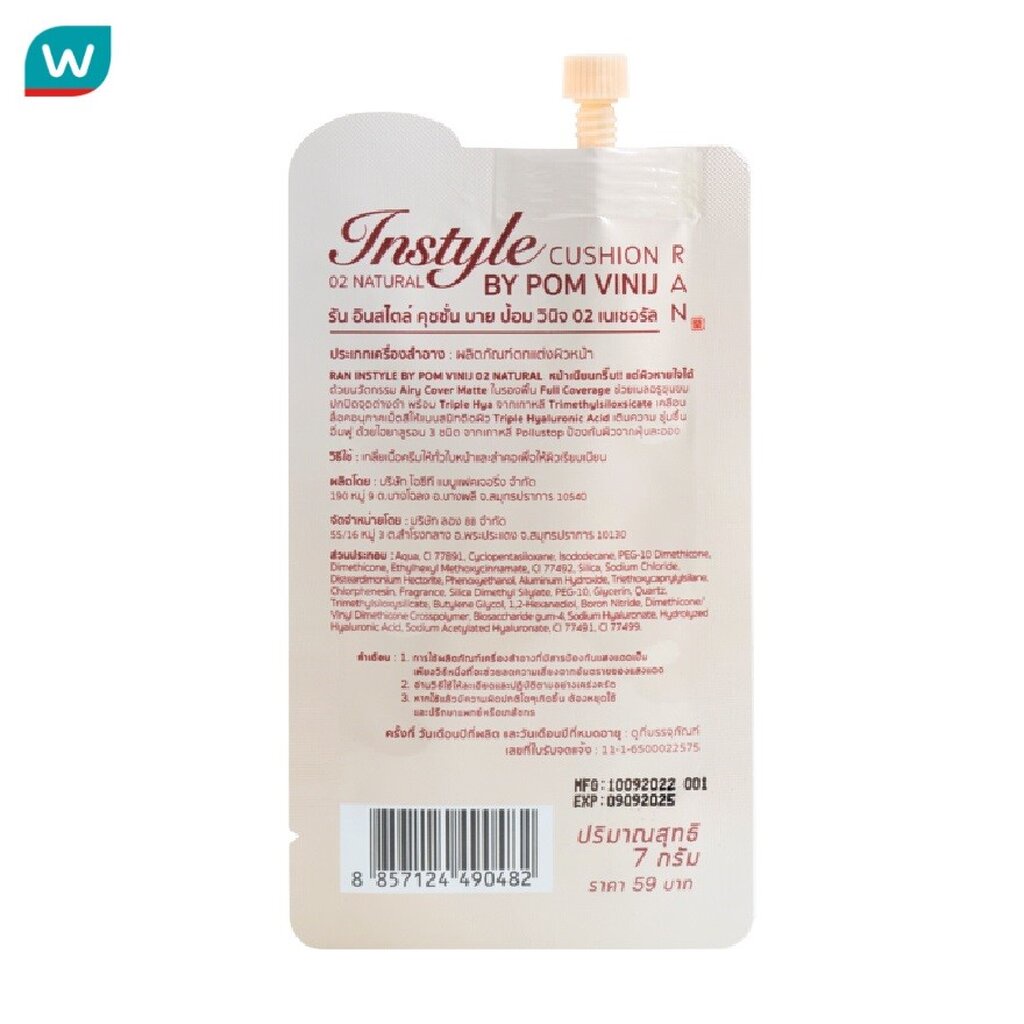 Ran รัน อินสไตล์ คุชชั่น บาย ป้อม วินิจ 7ก. 02 เนเชอรัล
