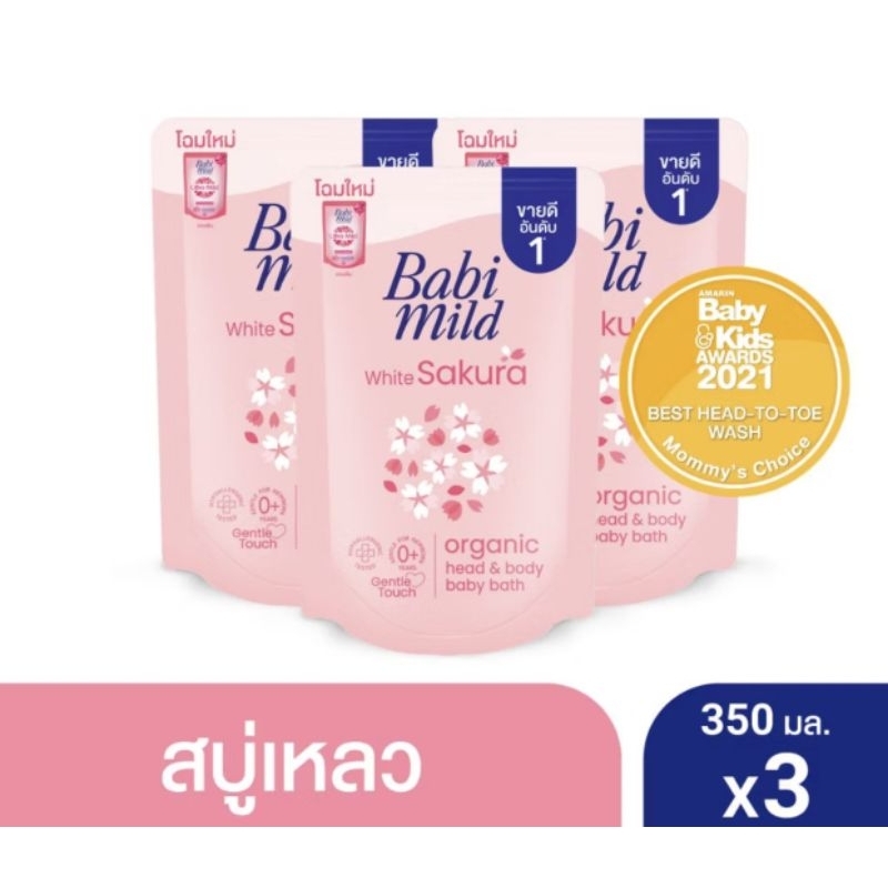 Babi Mild เบบี้มายด์ ผลิตภัณฑ์อาบน้ำสำหรับเด็ก เบบี้วอช บอดี้ (เลือกสูตร) ขนาด 350 มล แพ็ค 3 ถุง