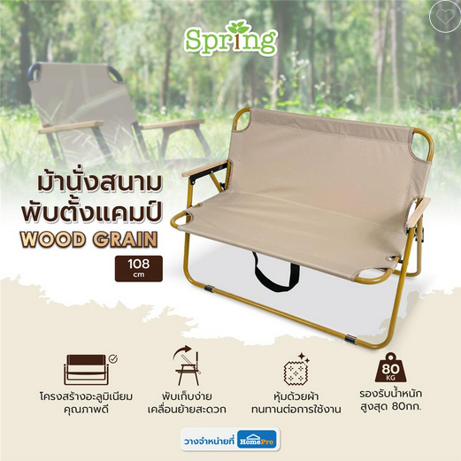 เก้าอี้พับตั้งแคมป์ SPRING WOOD GRAIN 108X60 ซม. สีครีม