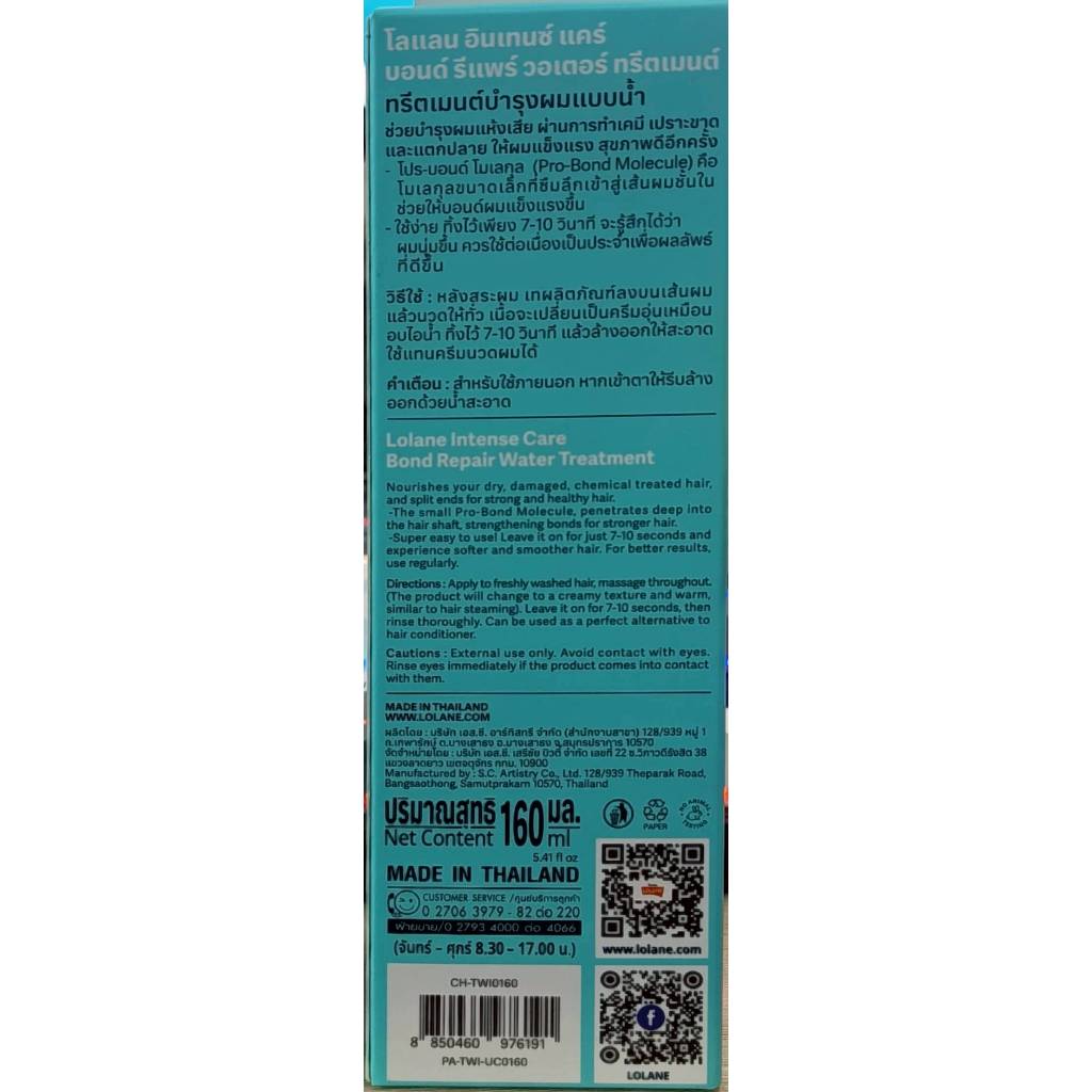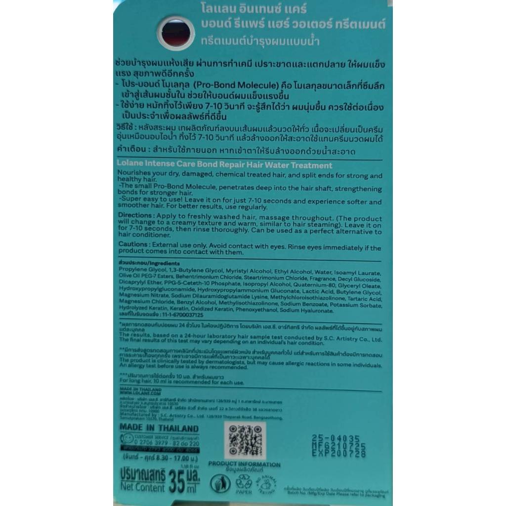 [ 1ชิ้น ] Lolane โลแลน อินเทนซ์ แคร์ บอนด์ รีแพร์ วอเตอร์ ทรีตเมนต์ 35 มล./ 160 มล. (1ชิ้น) 2 ขนาด