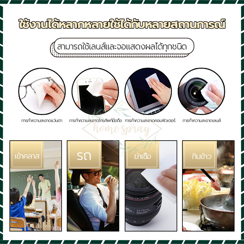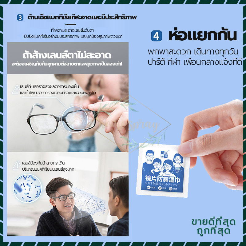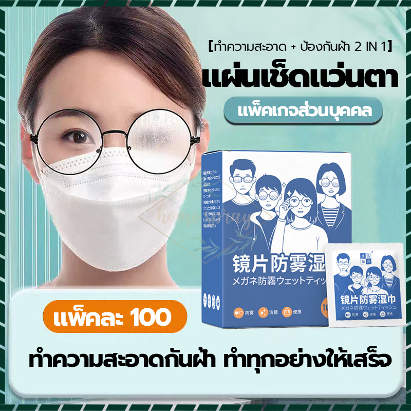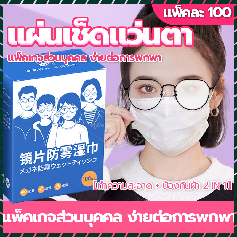 แผ่นเช็ดแว่นตา กันฝ้า แบบเปียก 100แผ่น เช็ดคราบน้ำมัน สะอาดไว ปลอดภัยต่อเลนส์แว่นตา ผ้าเช็ดแว่นตา