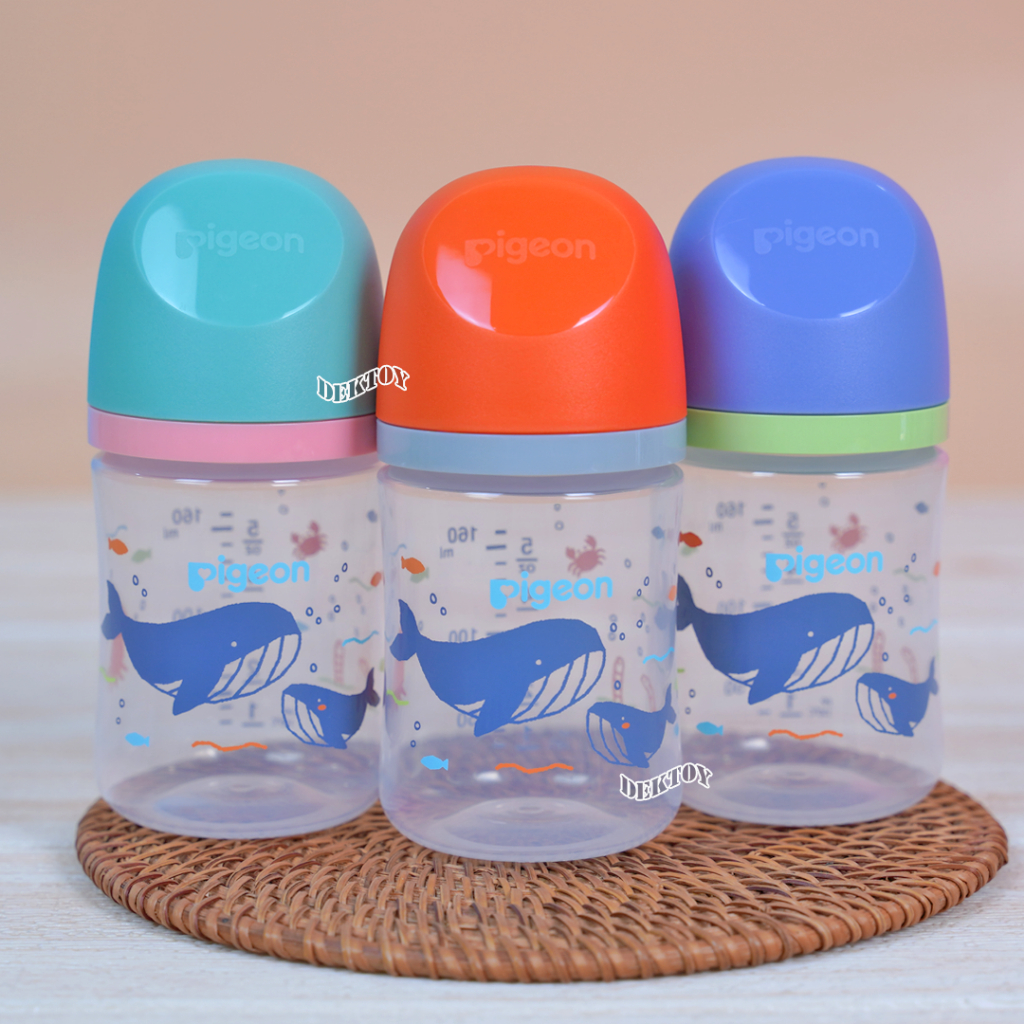 Pigeon พีเจ้น ขวดนมพีเจ้น PPWN วาฬสีน้ำเงิน 5/8ออนซ์ 160 /240มล. คอกว้าง (3ขวด)
