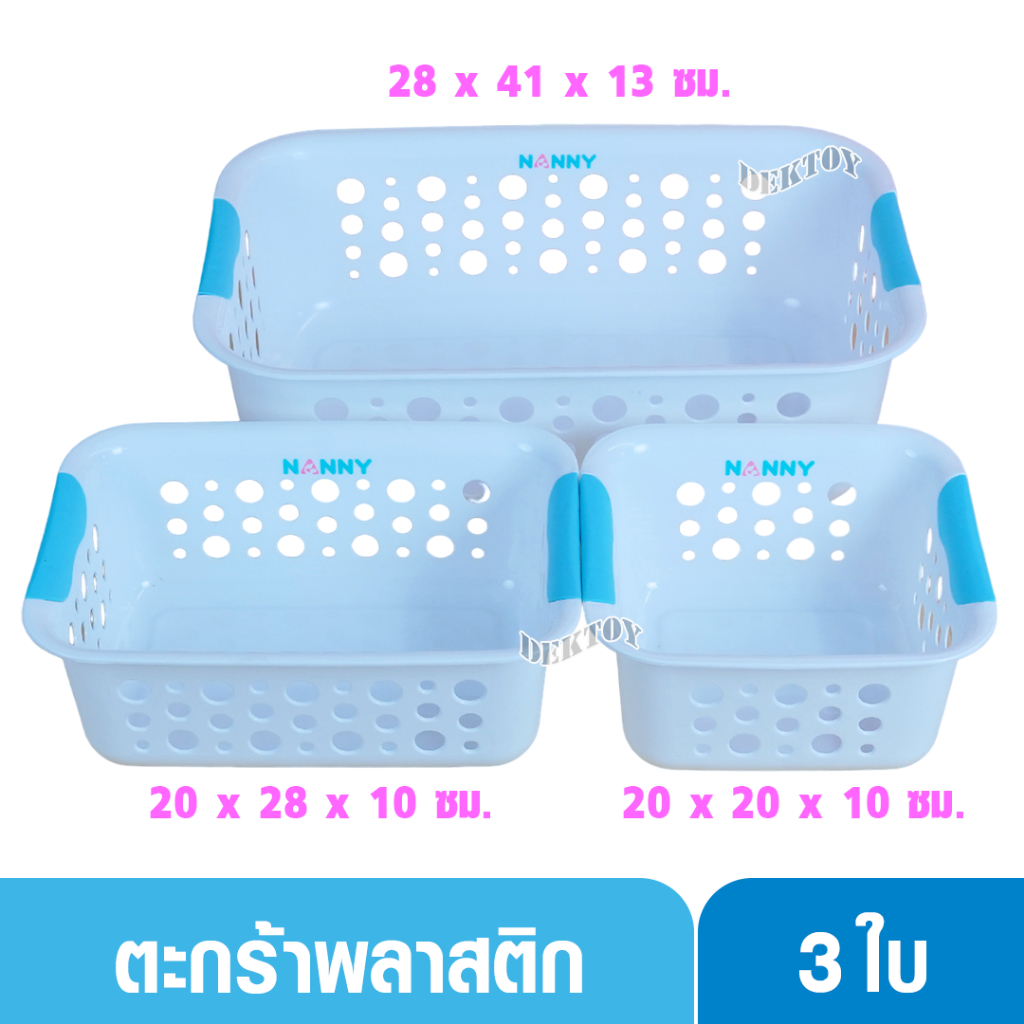 3 ใบ NANNY แนนนี่ ตะกร้าพลาสติกแนนนี่ ชุดเล็ก 353,354,357