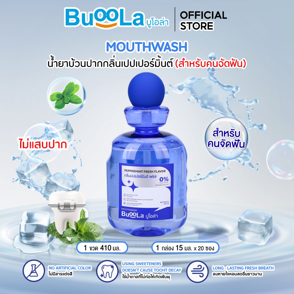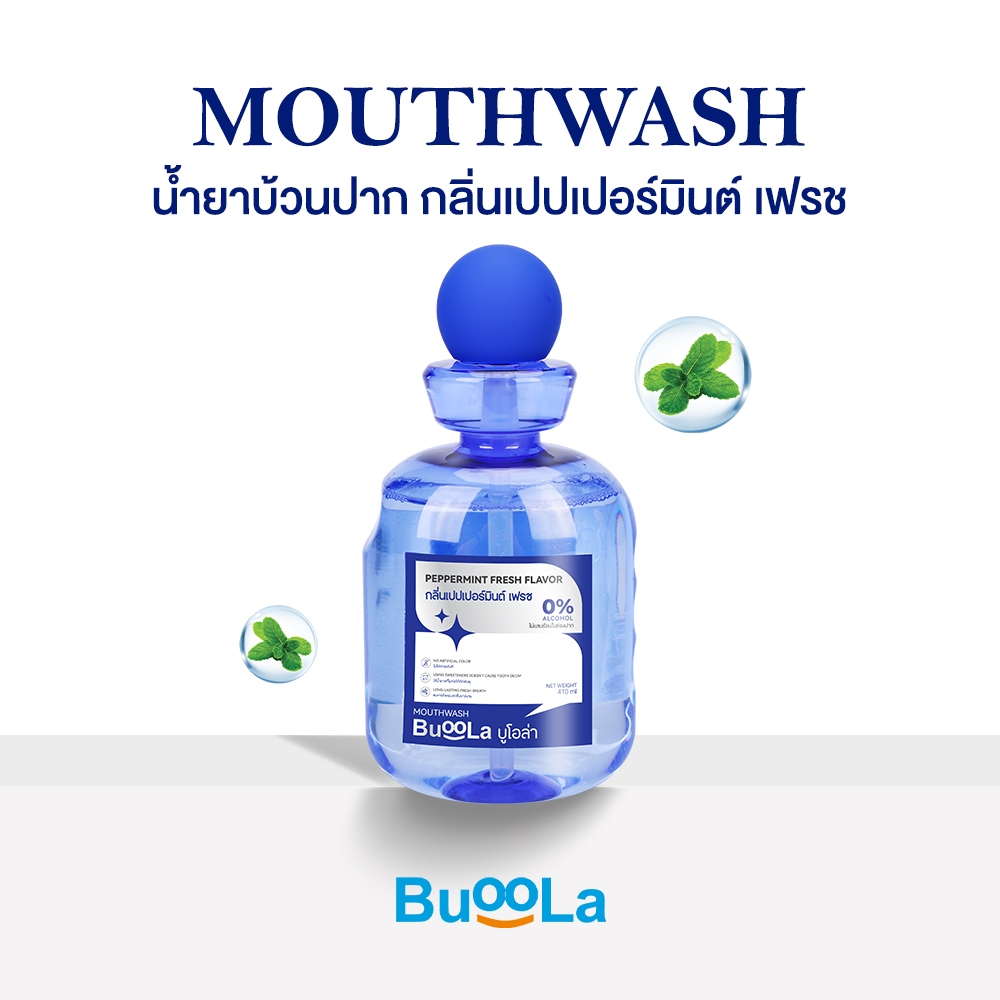 Buoola น้ำยาบ้วนปาก กลิ่นเปปเปอร์มินต์ สูตรไม่มีแอลกอฮอล์ ไม่แสบปาก กลิ่นหอม ปากสะอาด