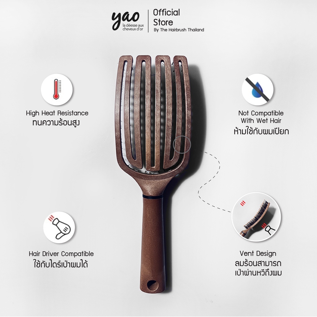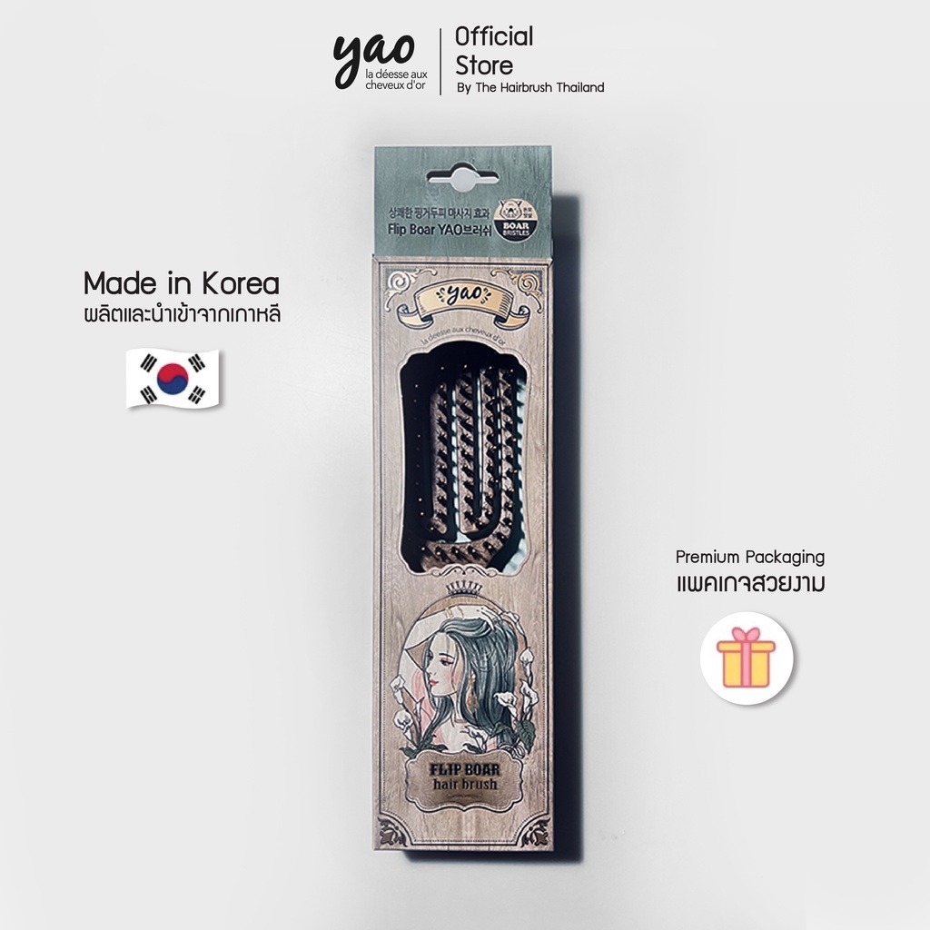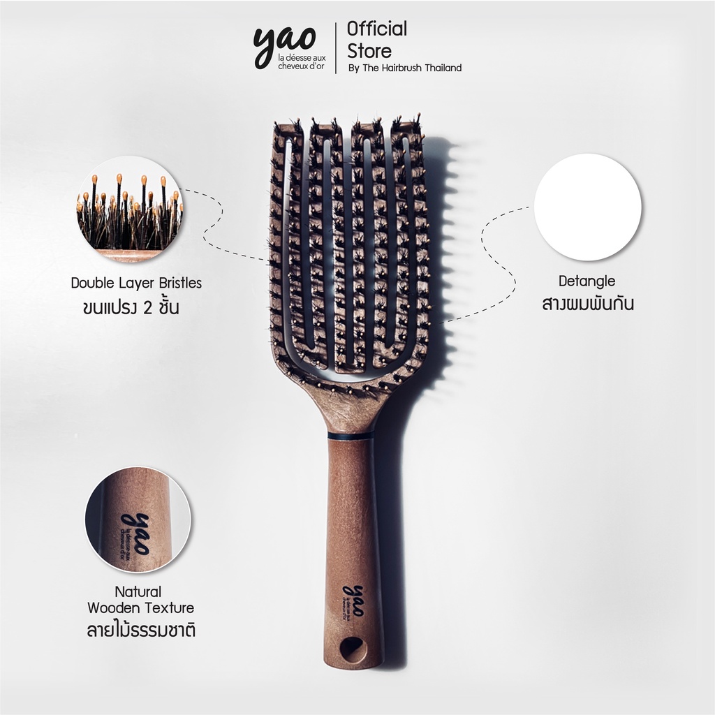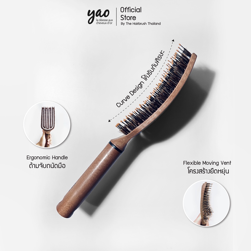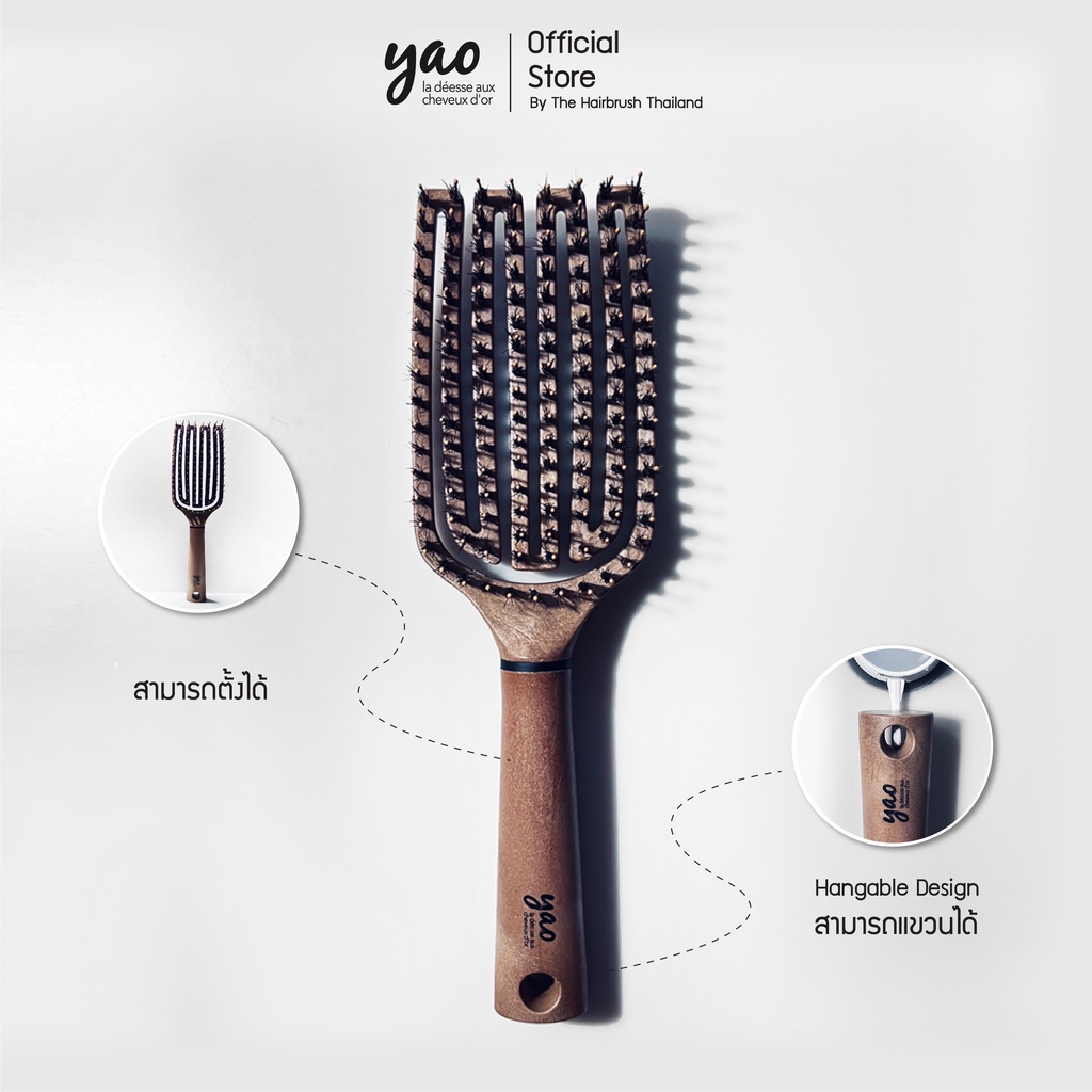 YAO Moving Flip Boar Brush หวีขนหมูป่าแท้สำหรับบำรุงเส้นผมให้เงางามเป็นธรรมชาติขนาดใหญ่พิเศษหวีได้ทั่วถึงกว่าสำหรับผมยาว