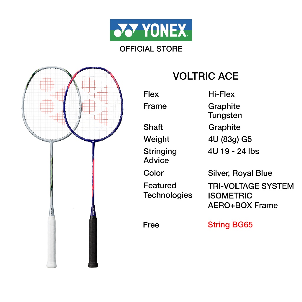 YONEX VOLTRIC ACE ไม้แบดมินตัน สายพลัง สำหรับรุ่นเริ่มต้นพร้อมกับ TRI-VOLTAGE SYSTEM ก้านอ่อน แถมฟรีเอ็น BG65