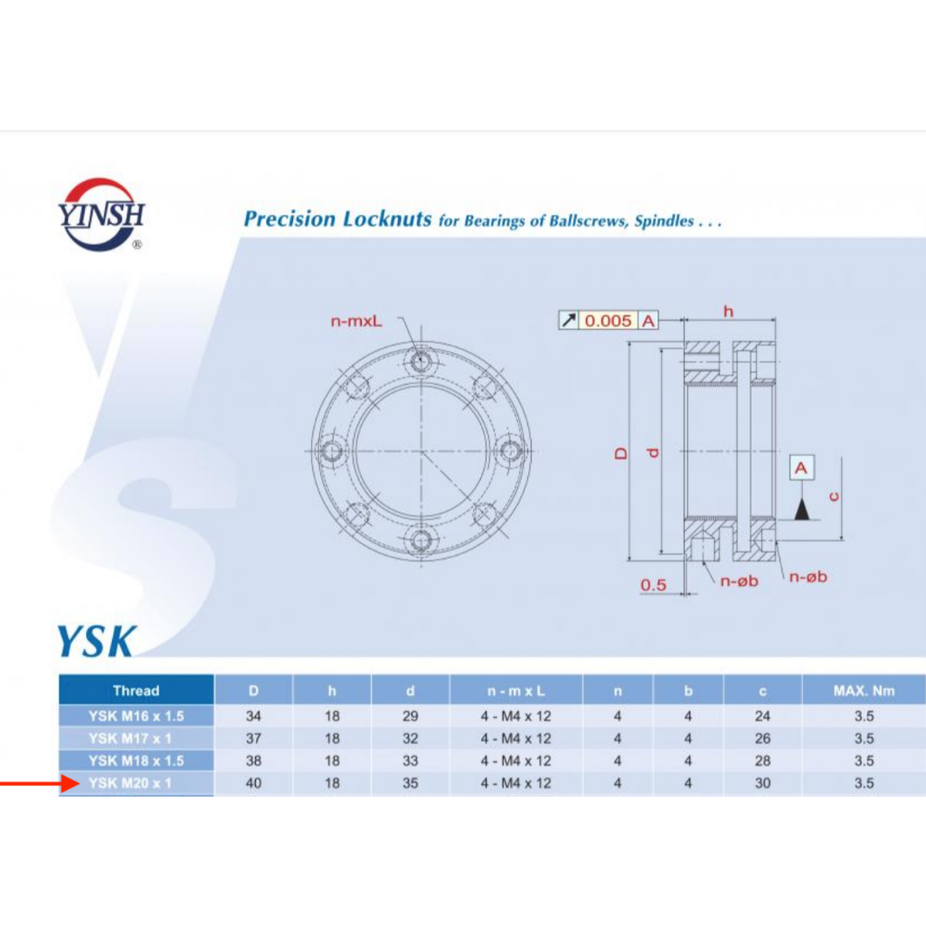 yinsh YSK M20x1.0P Precision Locknut With locking พรีซิชั้น ล็อกน็อต YINSH จากประเทสไต้หวัน YSK series