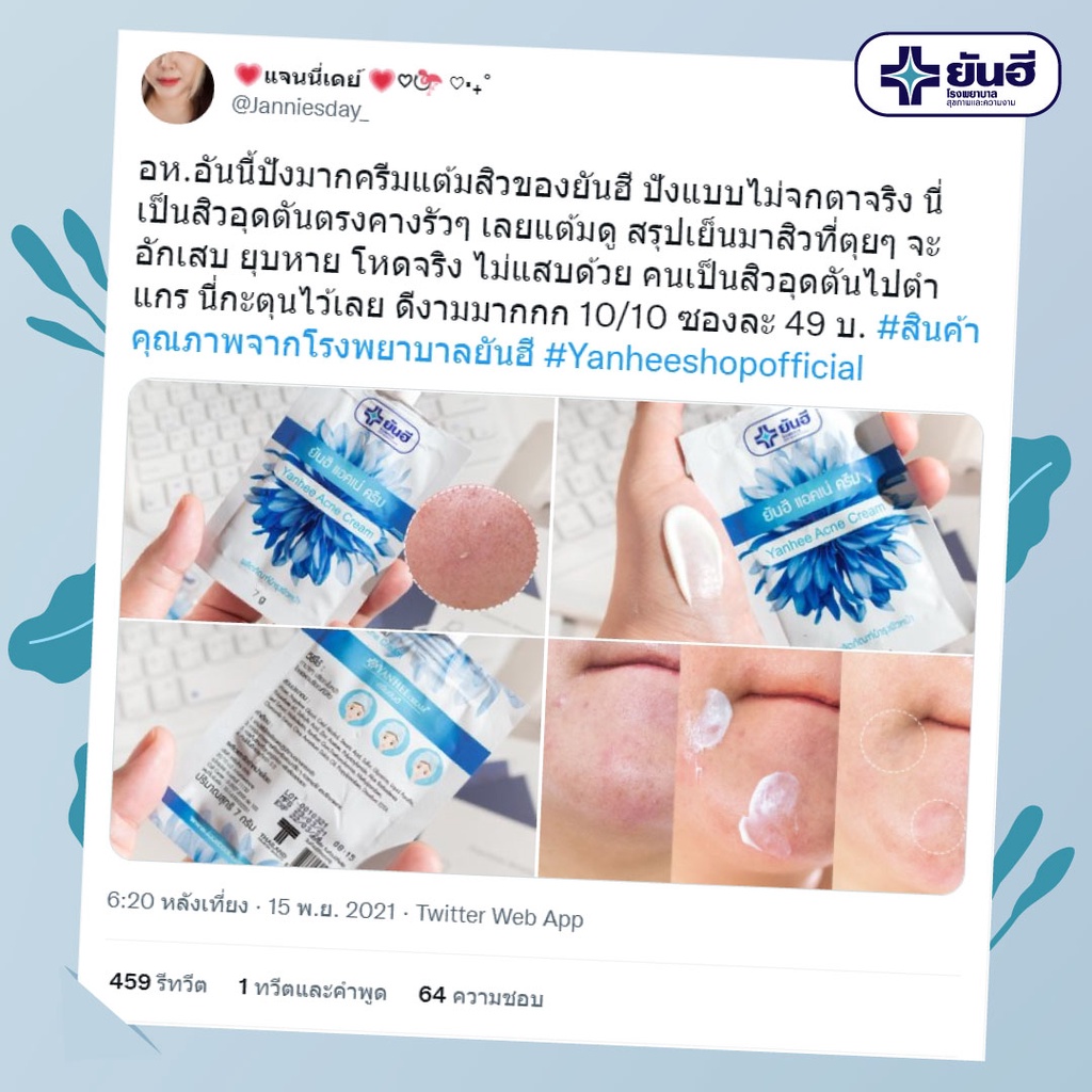 Yanhee Acne Cream 7g ยันฮี ครีมแต้มสิว ช่วยลดสิว สิวยุบทันใจ สูตรเฉพาะ รพ. ยันฮี