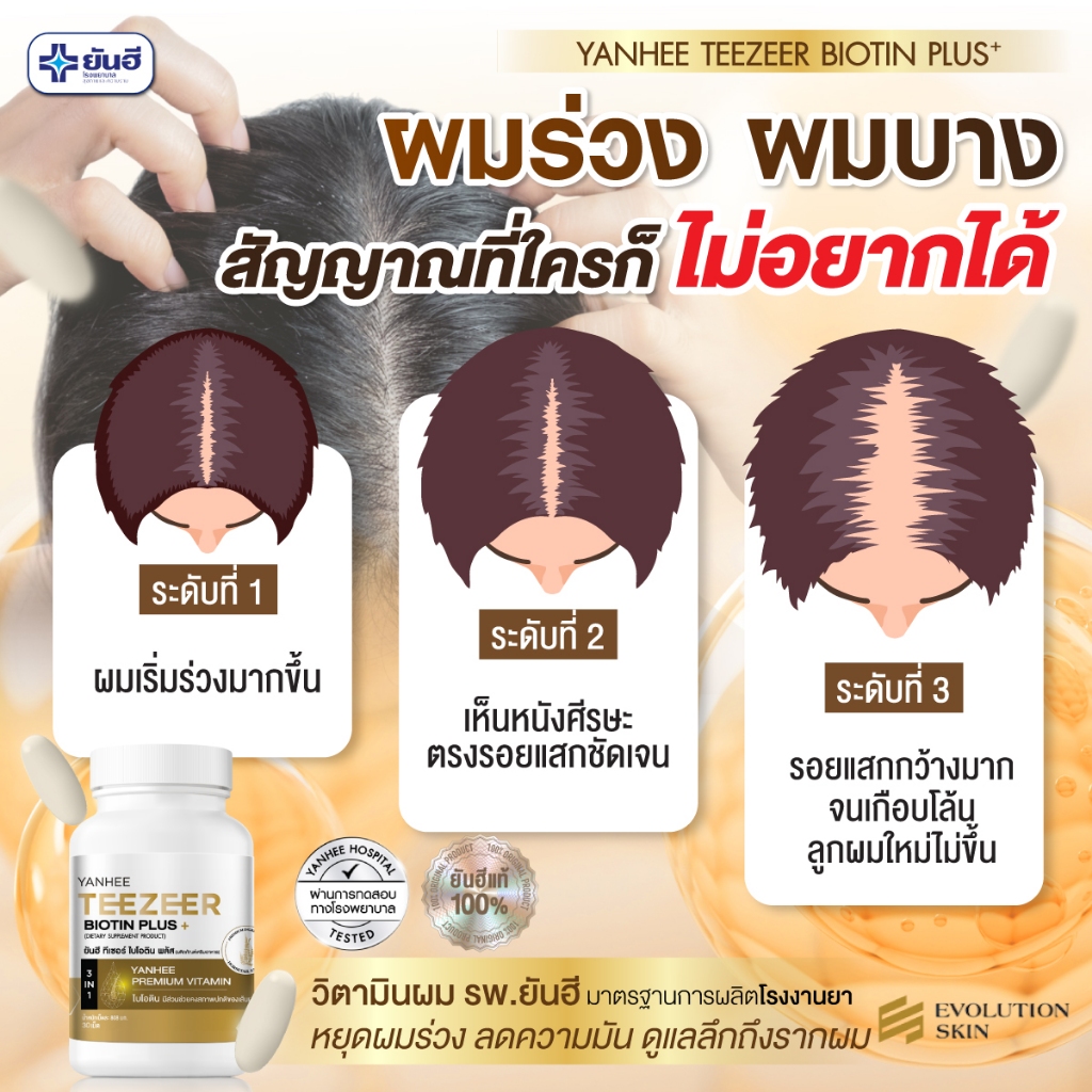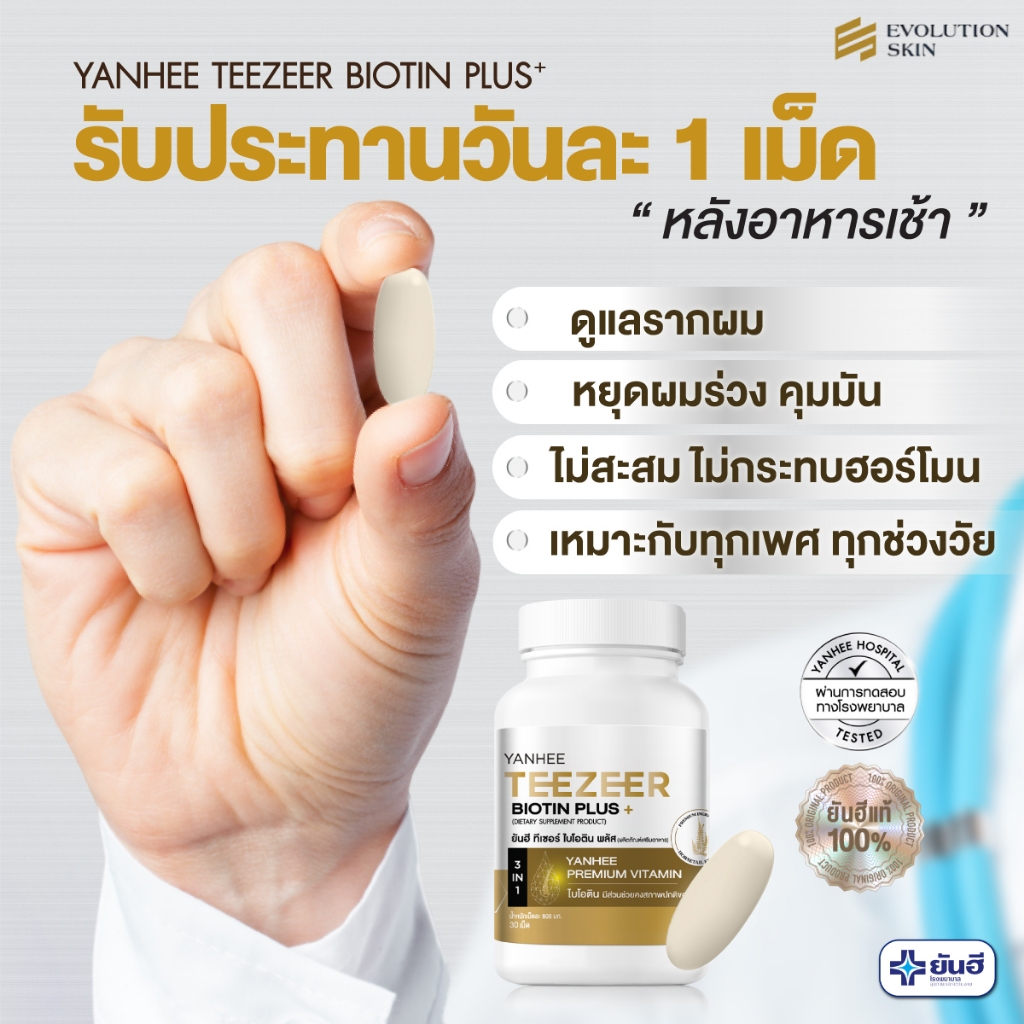 Yanhee Teezeer Biotin Plus | วิตามินผม ยันฮี ไบโอติน 1 กระปุก | วิตามินบำรุงเส้นผมสูตรเข้มข้น ช่วยกระตุ้นผมขึ้นใหม่