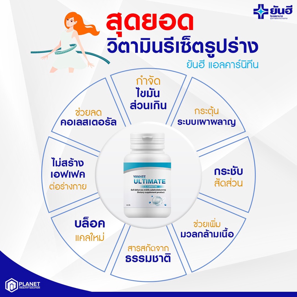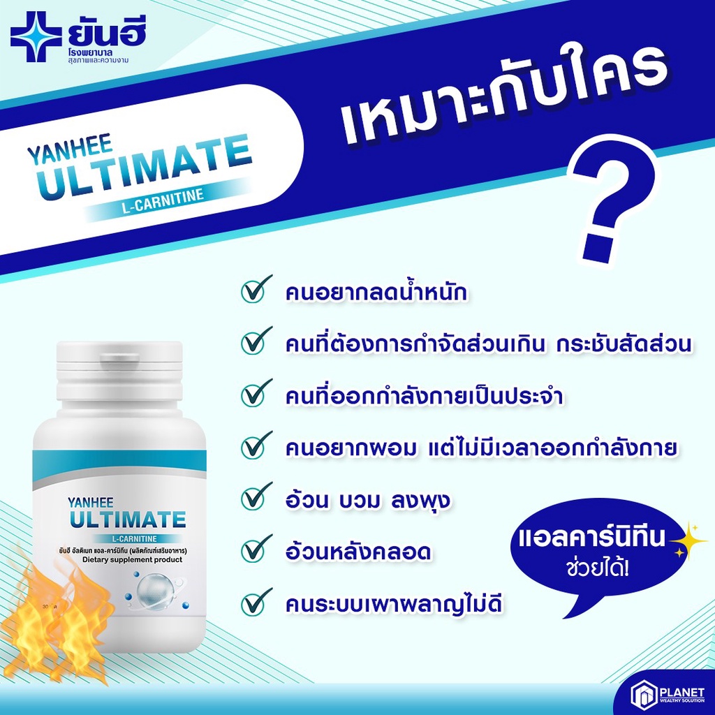 Yanhee Ultimate L-Carnitine ยันฮี อัลติเมท แอล-คาร์นิทีน ช่วยเผาผลาญ อิ่มนาน อาหารเสริมยันฮี สุขภาพดี