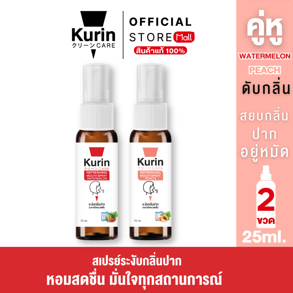 จับ คู่ Kurin care Refreshing Mouth Spray Peach & Watermelon 25 ml./ขวด