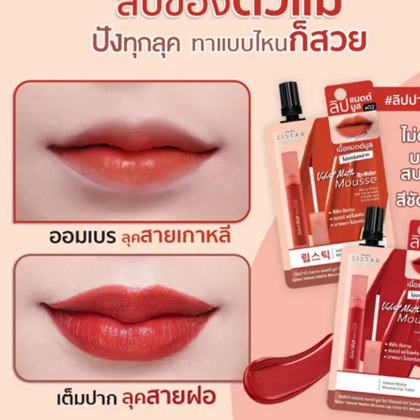 [ กล่องx6 ] Sistar Velvet Mousse Lip Color ซิสต้าร์ เวลเวท มูส ลิป คัลเลอร์ 2g ( เลือกสี )