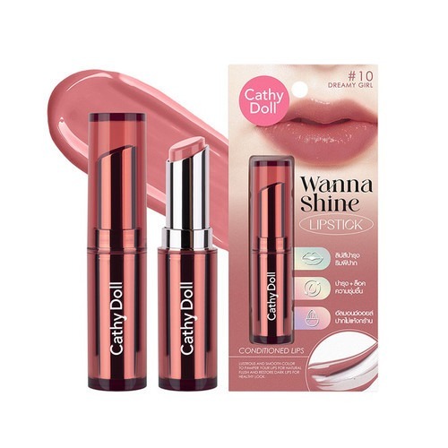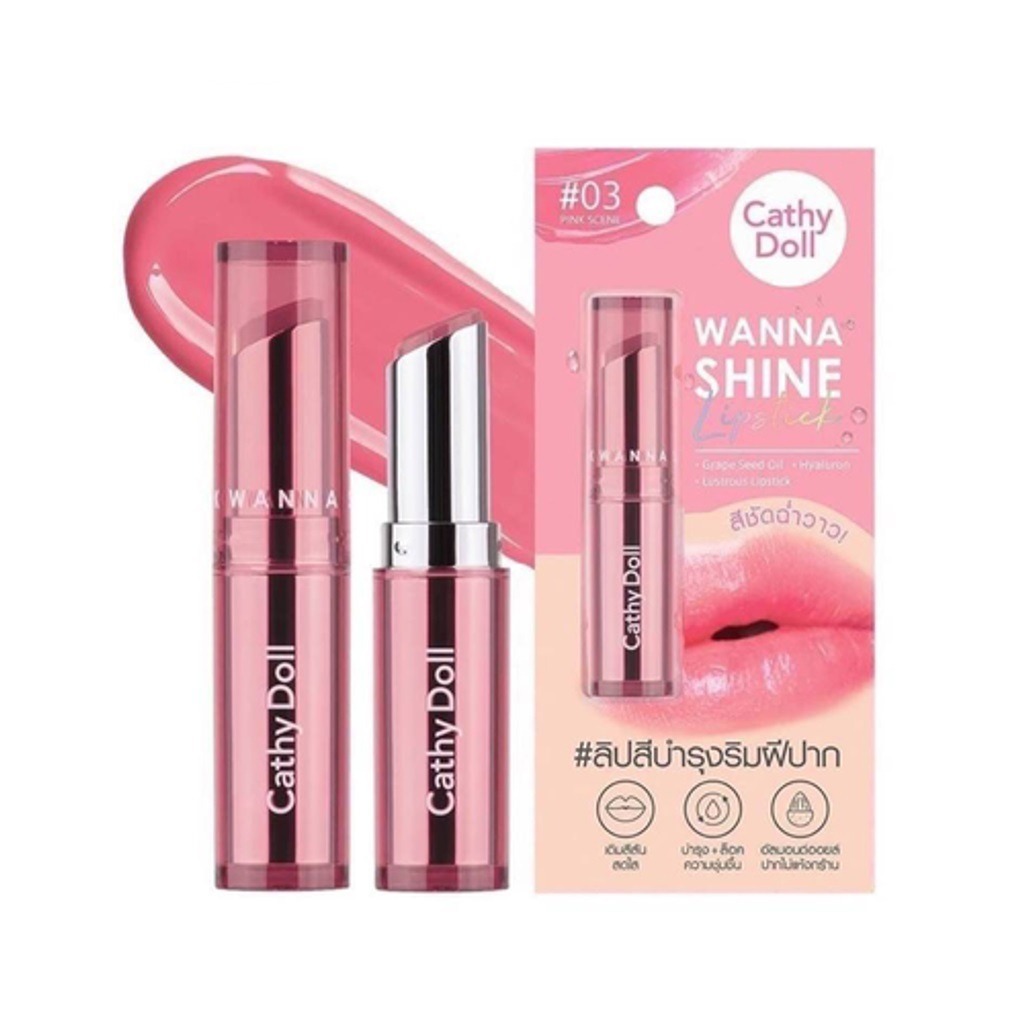 (แท่ง) Cathy Doll Wanna Shine Lipstick 3g เคที่ ดอลล์ ลิปสติกเนื้อวาว สัมผัสชุ่มชื้น