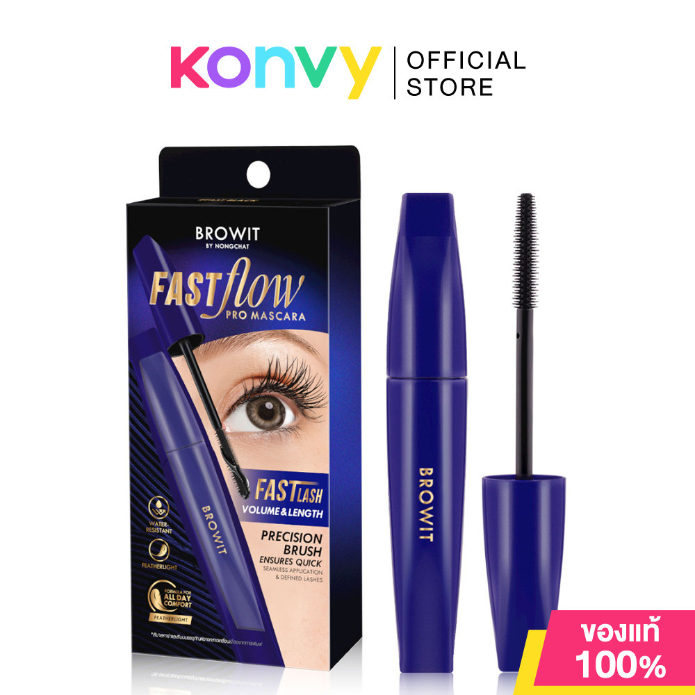 Browit Fast Flow Pro Mascara 6.5g #Fast Black มาสคาร่าบราวอิท สูตรเพื่อความเบาสบายตลอดวัน กันน้ำ กันเหงื่อ ติดทนยาวน...