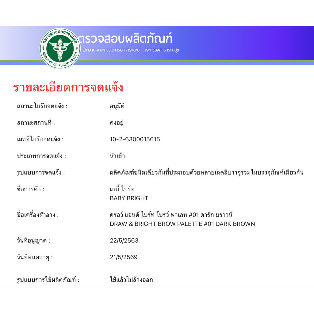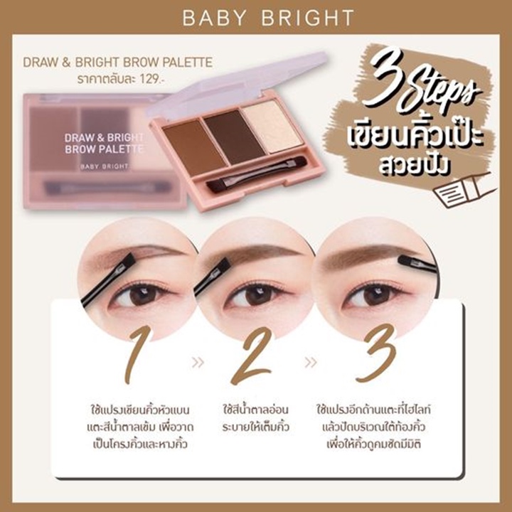 เบบี้ ไบร์ท Baby Bright Draw & Bright Brow Palette 0.86g X 3colors พาเลทคิ้ว