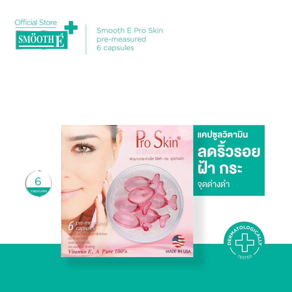 Pro Skin แคปซูลวิตามิน สกัดจากเมล็ดองุ่น 6 ชิ้น ช่วยลดริ้วรอย ฝ้า กระ และจุดด่างดำ กระตุ้นการสร้างคอลลาเจน สมูทอี
