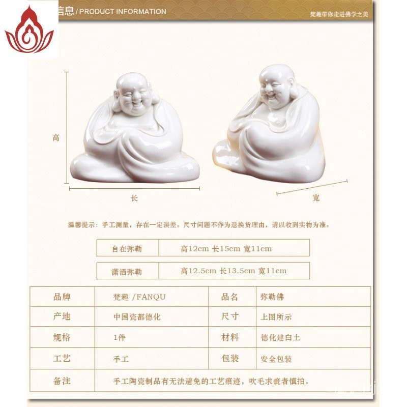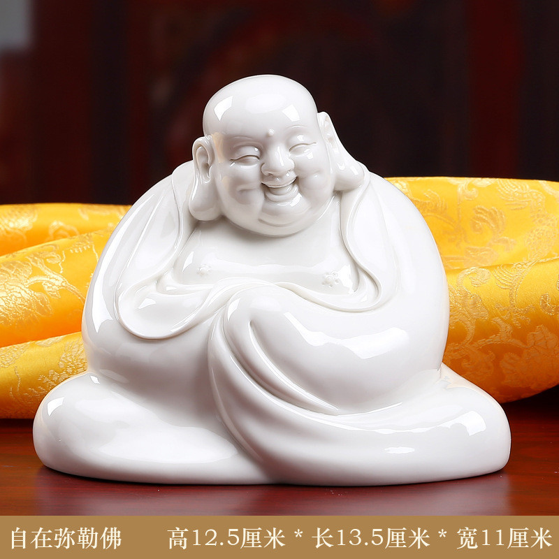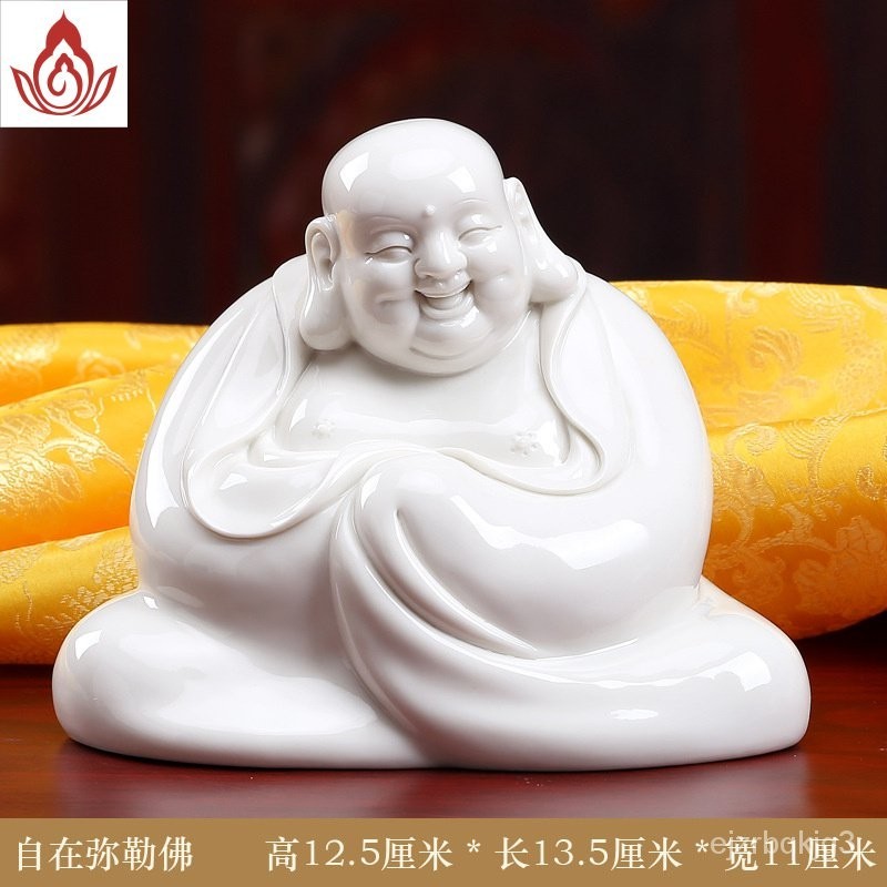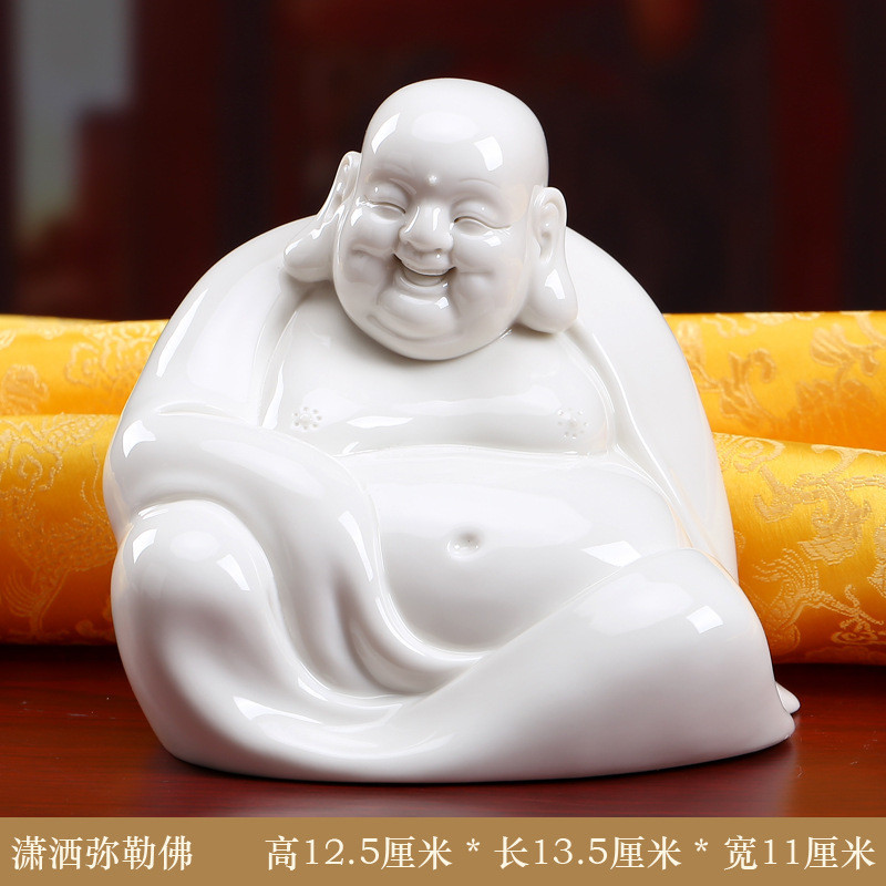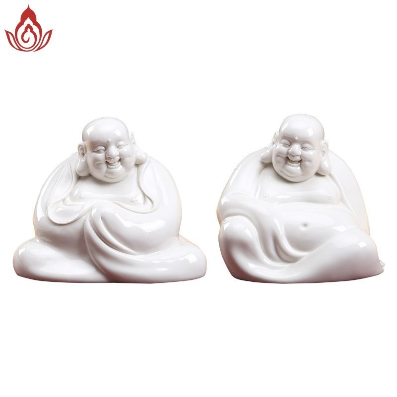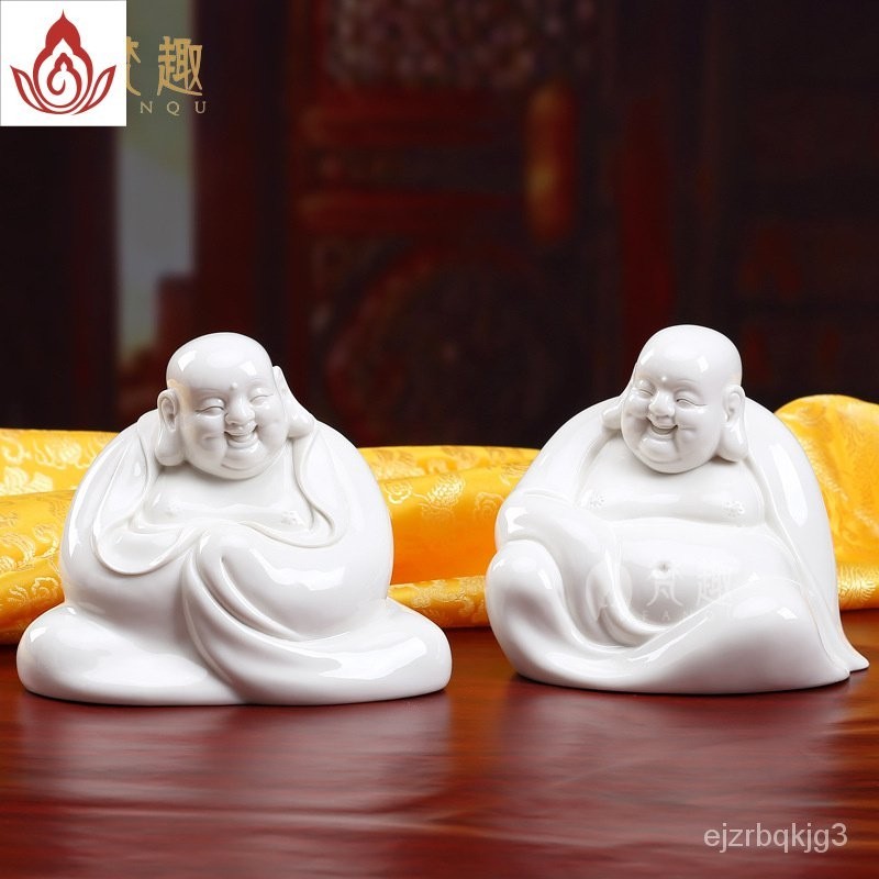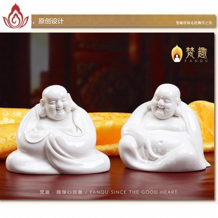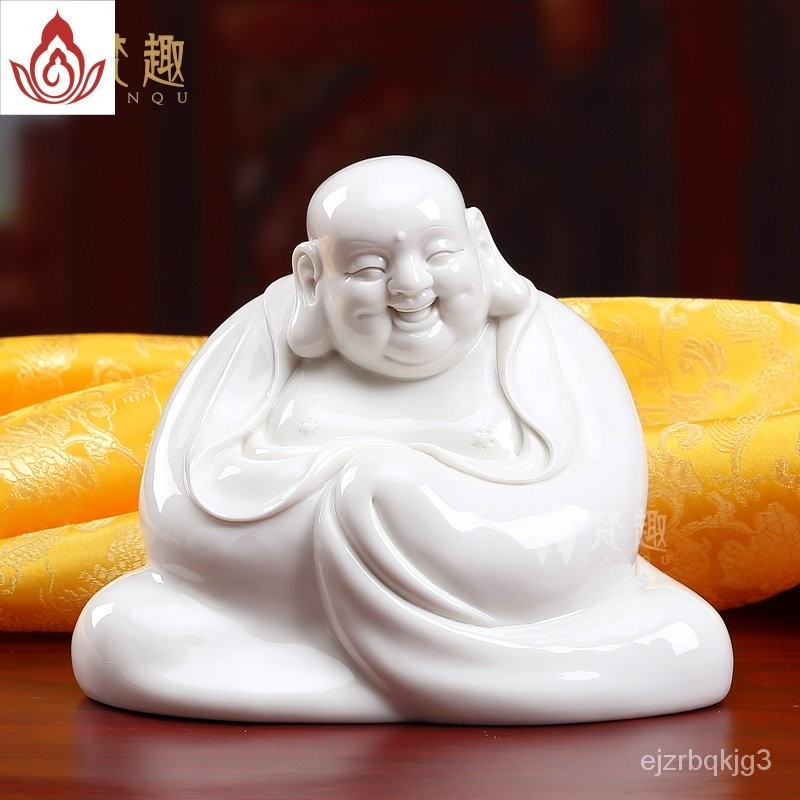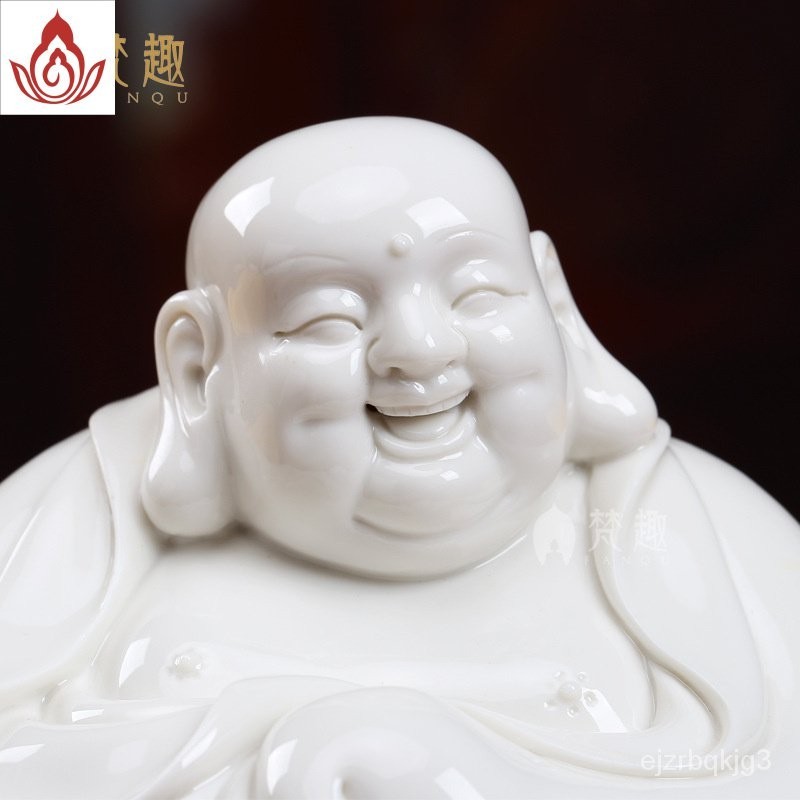 พระพุทธรูปเซรามิก Fanqu ตกแต่งโต๊ะทำงานของตกแต่งเครื่องลายครามสีขาว Maitreya Buddha Big Belly Laughing Buddha Bogu Frame
