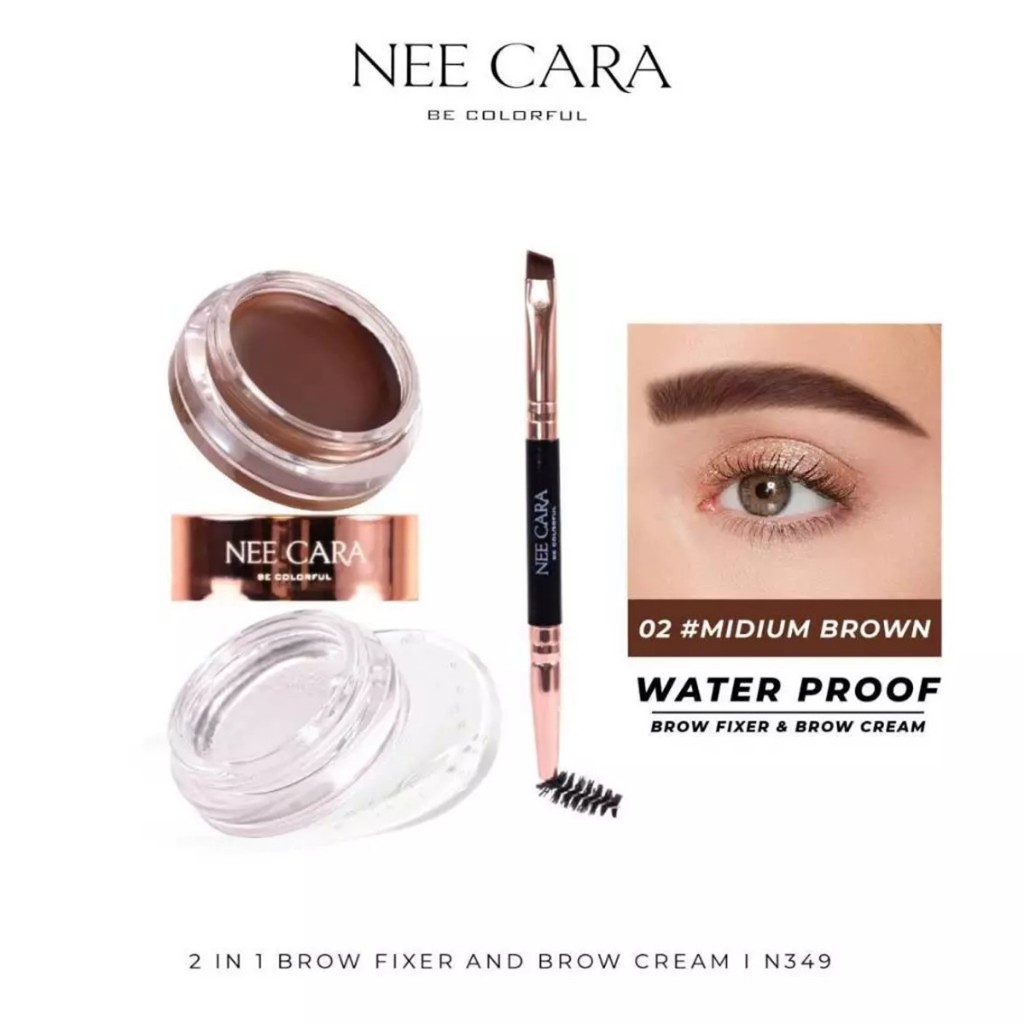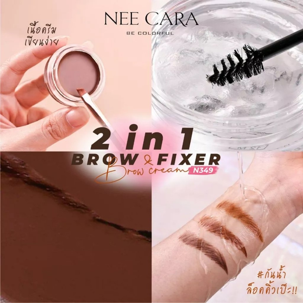 นีคาร่า ทูอินวัน บราว ฟิกเซอร์ แอนด์ บราว ครีม เขียนคิ้ว Nee cara 2in1 brow fixer & brow cream N349