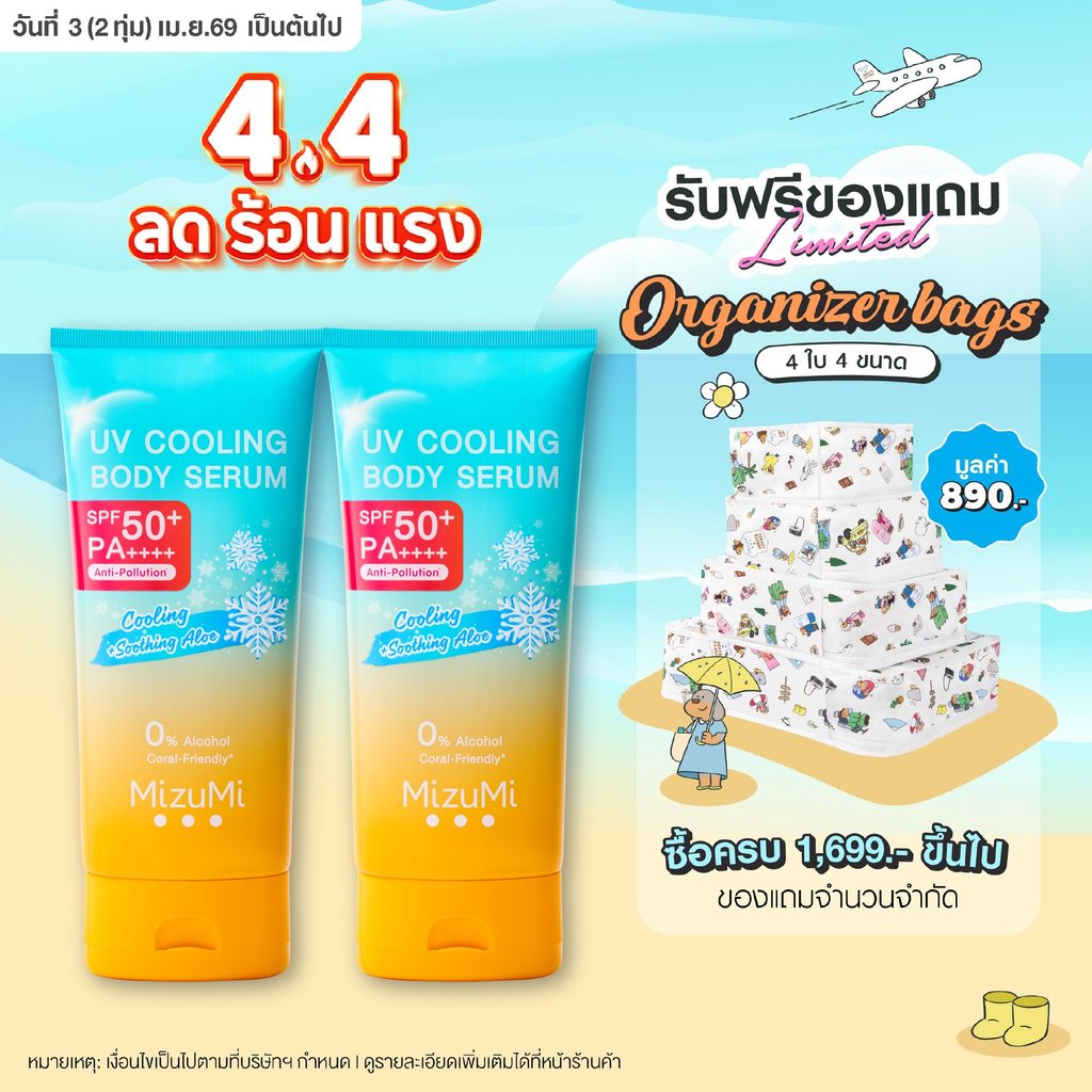 [แพ็คคู่] MizuMi UV Cooling Body Serum (165 ml)เซรั่มกันแดดทาผิวกายสูตรเย็น เนื้อบางเบา เย็นทันทีที่ทา ปกป้องผิวจากแดด