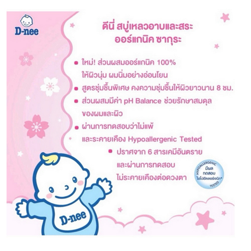 D-nee สบู่เหลว ออร์แกนิค อาบน้ำและสระผม เด็กแรกเกิด ขนาด 125 200 350 380 มล.
