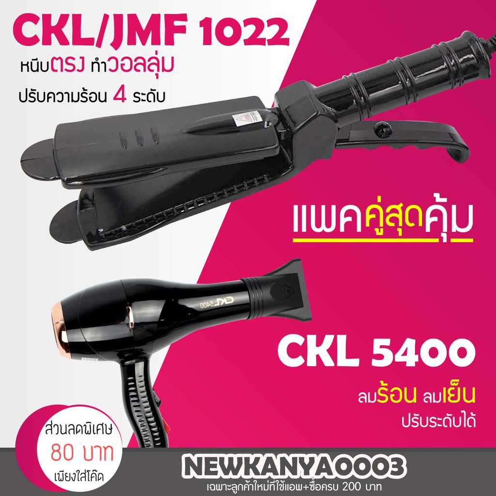 LIC 🔥 แพ็คคู่สุดคุ้ม เครื่องหนีบผม JMF1022 หรือ CKL1022 ที่หนีบผม หนีบผมตรง+ไดร์ เป่าผม เครื่องเป่าผม ที่เป่าผม CKL 5400