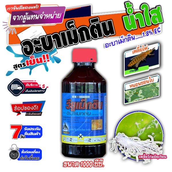อะบาเม็กติน(abamectin)1.8% W/V EC น้ำใส ขนาด 1 ลิตร 1ลังบรรจุ20 ขวด กำจัดหนอน เพลี้ยไฟ เพลี้ยแป้ง ไรแดงในผัก