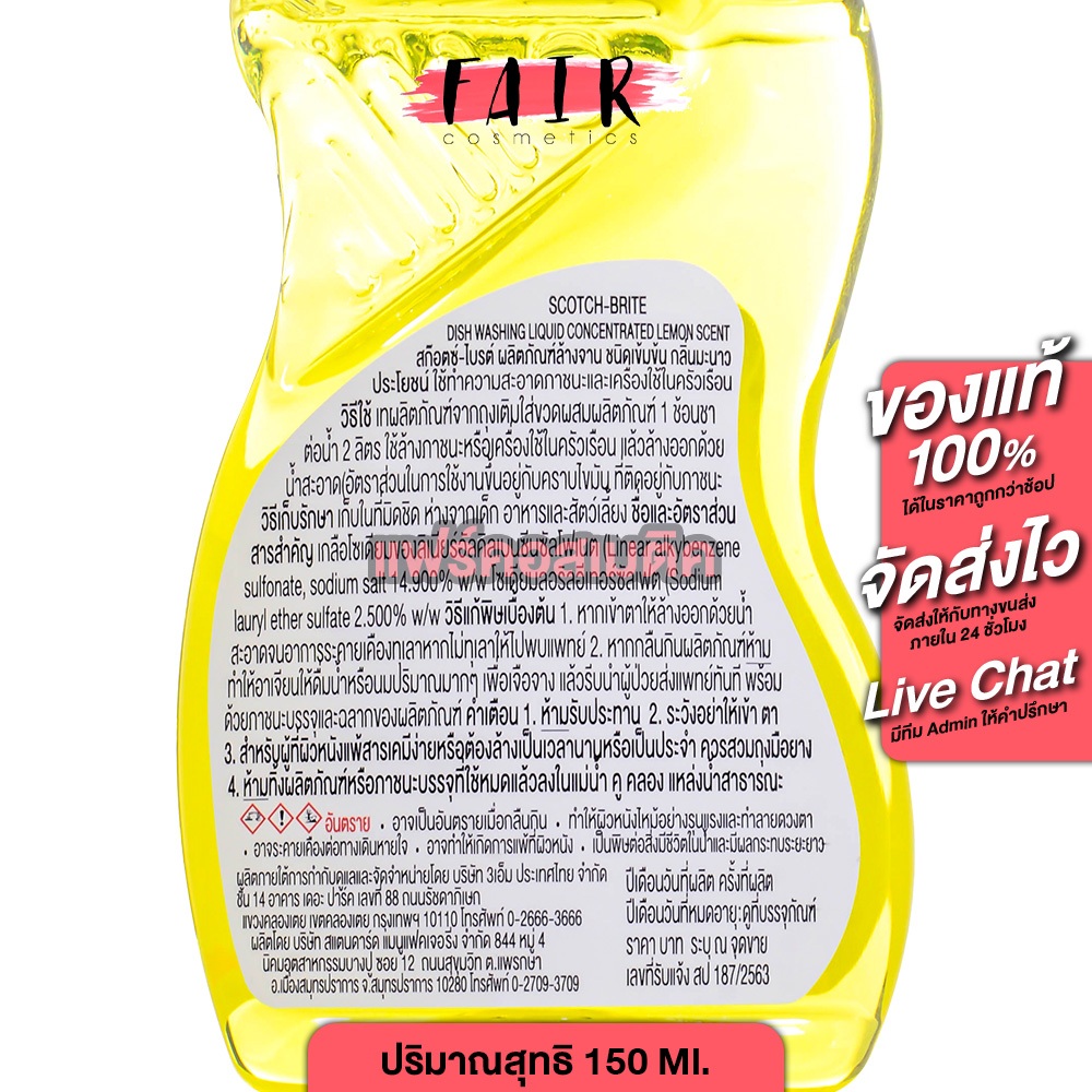 [ของแท้] Scotch Brite Dish Washing Liquid สก๊อตช์ ไบรต์ น้ำยาล้างจาน กลิ่นมะนาว [150 ml.] น้ำยา ล้างจาน เข้มข้น หมดจด