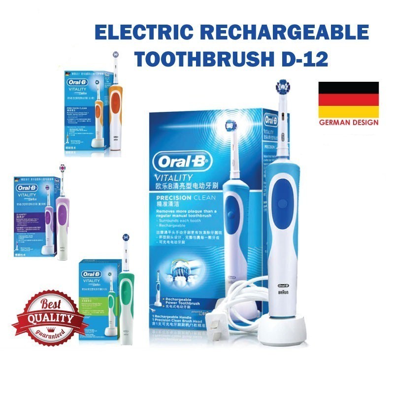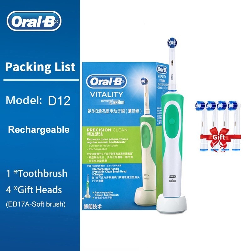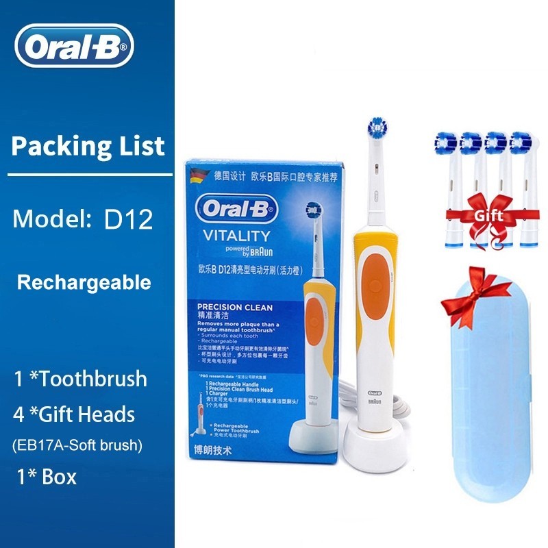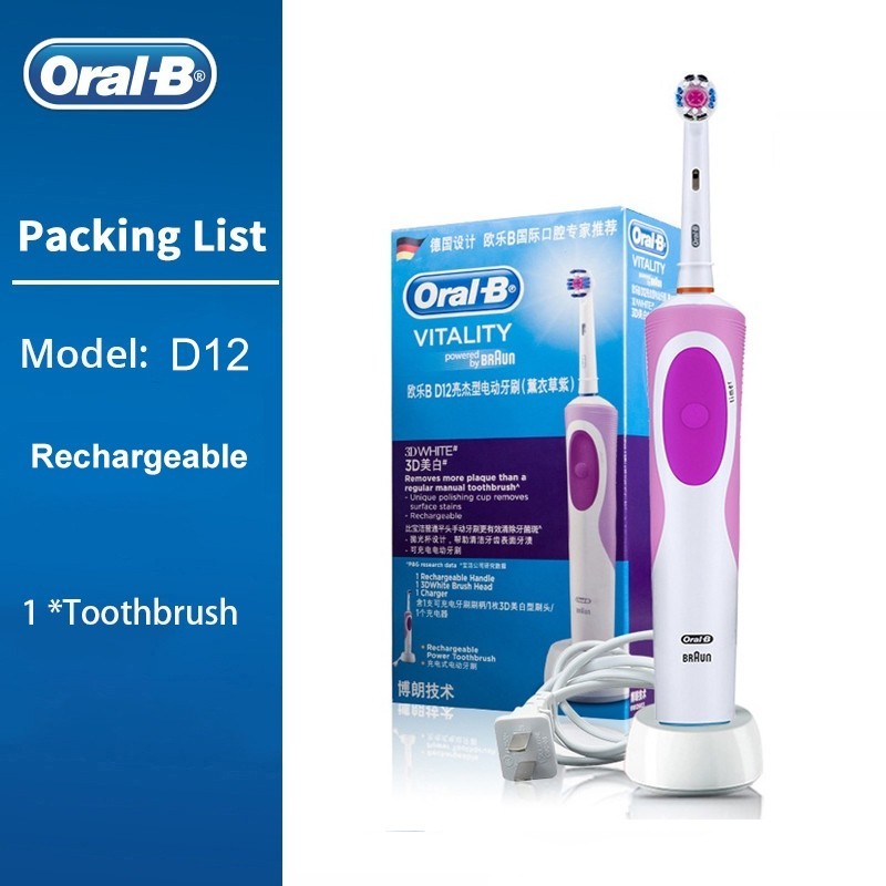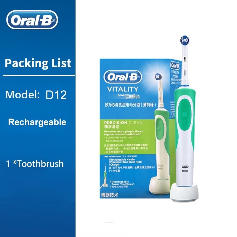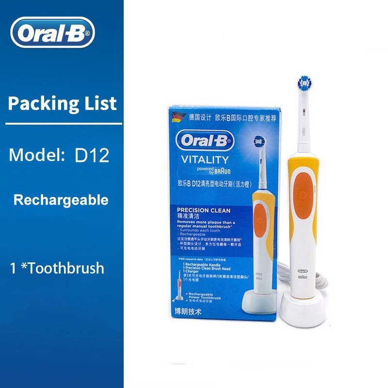 Oral B D12 Vitality แปรงสีฟันไฟฟ้าแบบชาร์จไฟได้ 2D หมุน Deep Clean เปลี่ยนหัวแปรงสุขอนามัยแปรงฟันอิเล็กทรอนิกส์