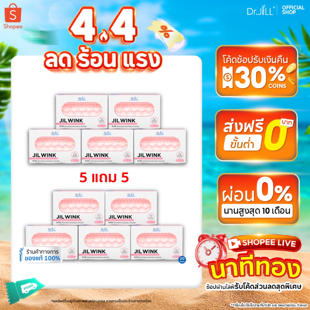[ส่งฟรี] 5 แถม 5 JIL WINK ผลิตภัณฑ์เสริมอาหารบำรุงผิว ดร.จิล 200 แคปซูล 10 กล่อง จิลวิงซ์ ผิวกระจ่างใส น ุ่มลื่นชุ่มชื้น